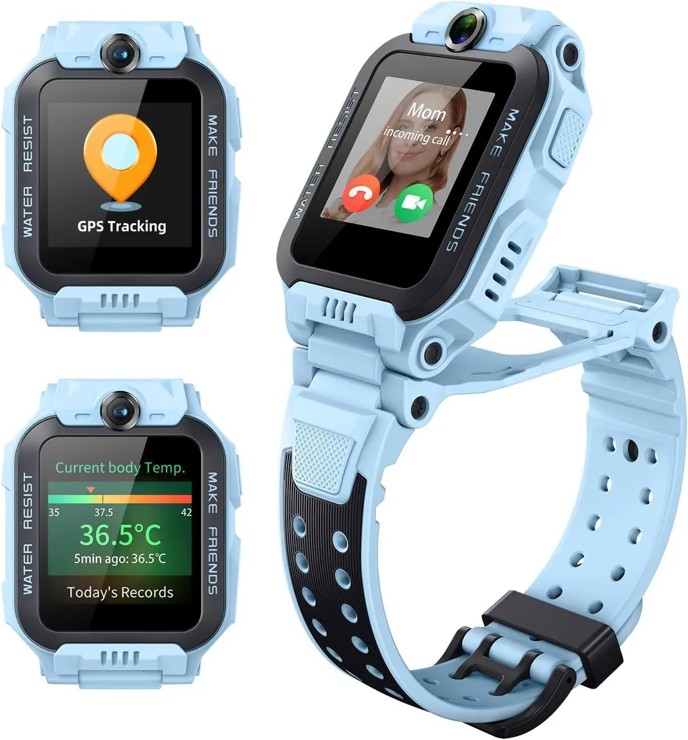 Auf Lager Versand durch Amazonimoo Z7 Kinder Smartwatch, Dual-Kamera HD Video und Telefonanruf, GPS-Uhr mit Echtzeit-Standort und 14 Tagen Historie, 4 Sportmodi, 24-Stunden Gesundheitsmonitoring, IPX8 wasserdicht für Kinder(Blau)