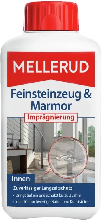 Auf Lager Versand durch AmazonMELLERUD Marmor & Feinsteinzeug Imprägnierung | 1 x 0,5 l | Effizientes Mittel zum Schutz vor Verschmutzungen von Natur- und Kunststeinen im Innen- und Außenbereich