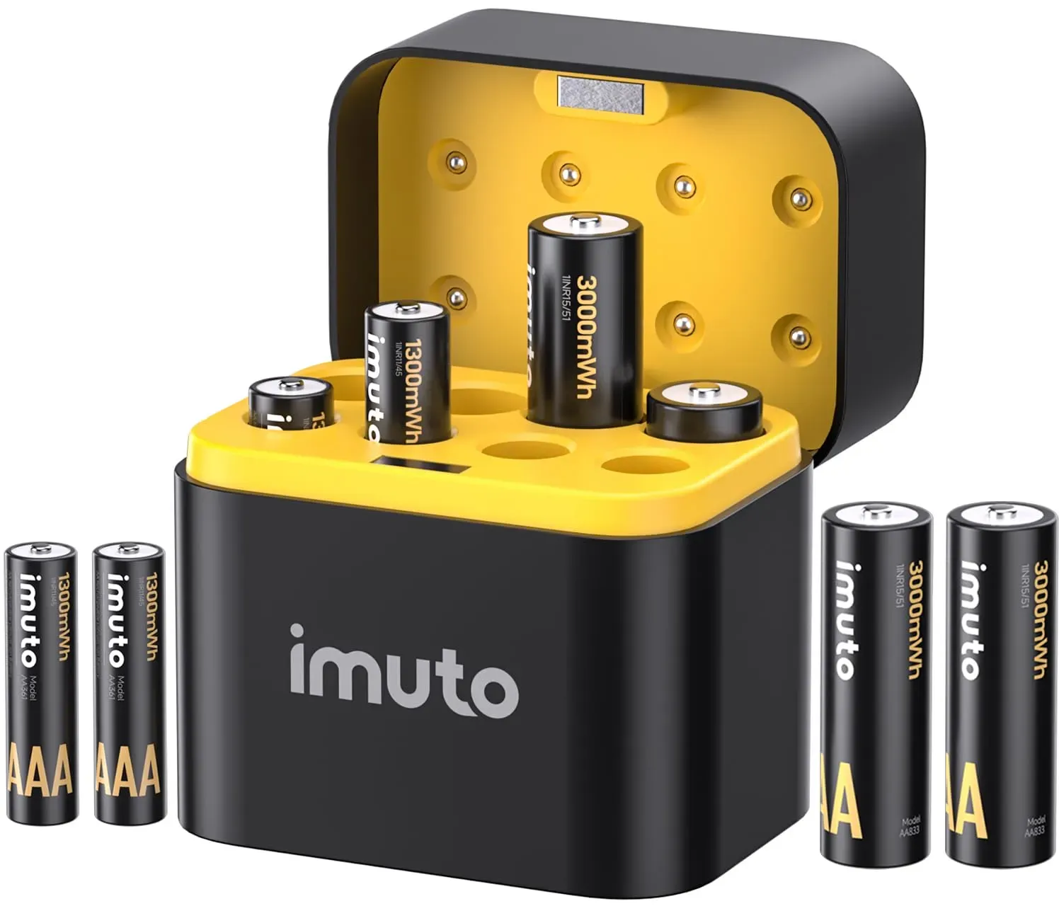 Zustand: Neu - Akkus - iMuto imuto - AA1000 - - Multifunktionales Design mit 4 AA + 4 AAADie imuto Lithium-Akkus umfassen 4 AAA- und 4 AA-Batterien mit hoher Energiedichte: AAA-Batterien bieten 1300 mWh, AA-Batterien 3000 mWh - ideal für über 1600 Ladezyklen und extreme Langlebigkeit. Durchgängige 1,5V-Ausgangsspannung bis zur vollständigen Entladung gewährleistet optimale Geräteleistung 1600 Zyklen & KosteneinsparungDie imuto AAA/AA-Lithiumbatterien sind bis zu 1600 Mal wiederaufladbar - entspricht dem Verbrauch tausender Einwegbatterien. Mit 1 n Lagerfähigkeit, geringer Selbstentladung und langfristiger Nutzung sparen Sie bis zu 80% gegenüber Wegwerfbatterien Integriertes Lade- & AufbewahrungssystemDas 8-fach-Ladegerät lädt 1-8 Batterien gleichzeitig und dient als kompakte Aufbewahrungsbox. Nie wieder verlorene Batterien in Schubladen! Perfekt organisiert für Zuhause und Reisen 2H-Schnellladetechnologie2-Stunden-Schnellladung für 1-8 AAA-Batterien dank USB-C-Anschluss (kompatibel mit Laptop, Powerbank, Auto-Adapter etc.). Flexibles Laden mit 5V/3A-Empfehlung für maximale Effizienz Ideal für HochleistungsgeräteDie AAA-Batterien eignen sich für Rasierer, Tastaturen, Blutdruckmessgeräte, Kinderspielzeug uvm.; die AA-Batterien für Gamepads, Kameras, Türschlösser, Blitzgeräte (inkl. Blink-Kameras) - Verkäufer: imuto-JP-Direct im amazon.de Marketplace Dieses 8er-Pack AAA-Akkus mit integrierter Lade- und Aufbewahrungsbox bietet Komfort und Ordnung. ![]() ![]() imuto Wiederaufladbare Lithium Akkus AAA 8-Pack mit Ladegerät, 1300mWh Hohe Kapazität 1.5V AAA Batterien, Lang anhaltende wiederaufladbare AAA Li-ion Batterie mit Integrierter Charing Aufbewahrungsbox