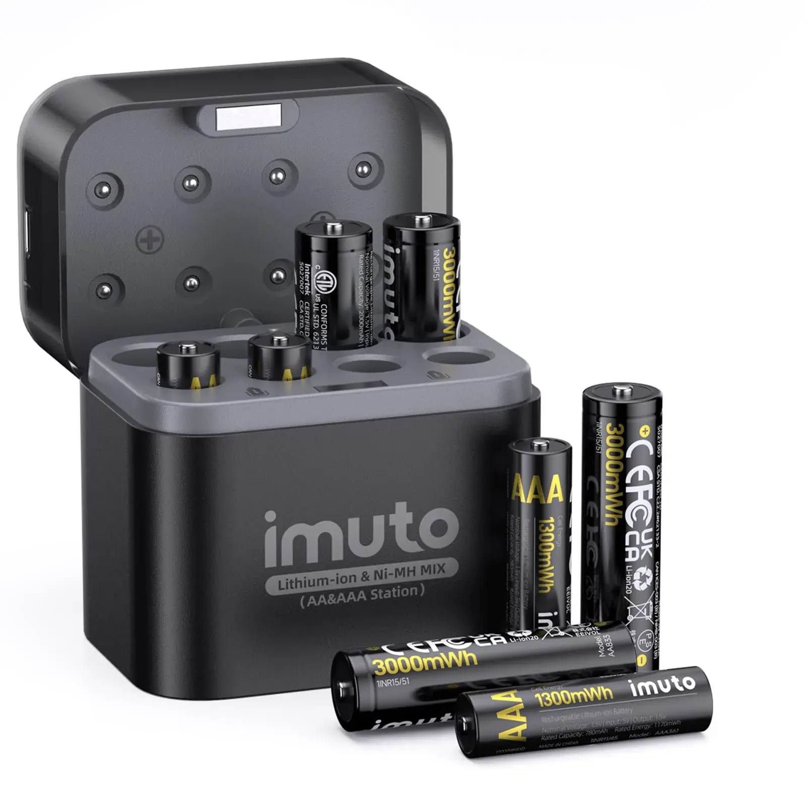 Auf Lager Versand durch Amazonimuto Wiederaufladbare Lithium Akkus AAA 8-Pack mit Ladegerät, 1300mWh Hohe Kapazität 1.5V AAA Batterien, Lang anhaltende wiederaufladbare AAA Li-ion Batterie mit Integrierter Charing Aufbewahrungsbox