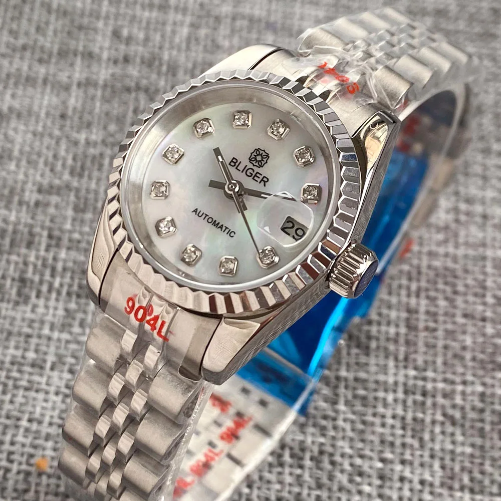 Der angezeigte Preis könnte seit dem letzten Update gestiegen sein - BLIGER 31mm NH05 Damen NH05 Mechanische Armbanduhren Polierte Lünette Saphirglas Grünes Zifferblatt Stick Index Datum 100M Wasserdicht - Zustand: NEW - bei Aliexpress DE - gefunden von Buycentral Diese automatische Damenuhr mit Diamant-Index und Saphirglas ist eine stilvolle Wahl für Frauen, die ein hochwertiges Accessoire suchen. ![]() Bliger 26mm Shell Zifferblatt Diamant Index nh05a Automatik uhr für Frauen Saphir Silber Roségold Stahl Armband Damen uhr