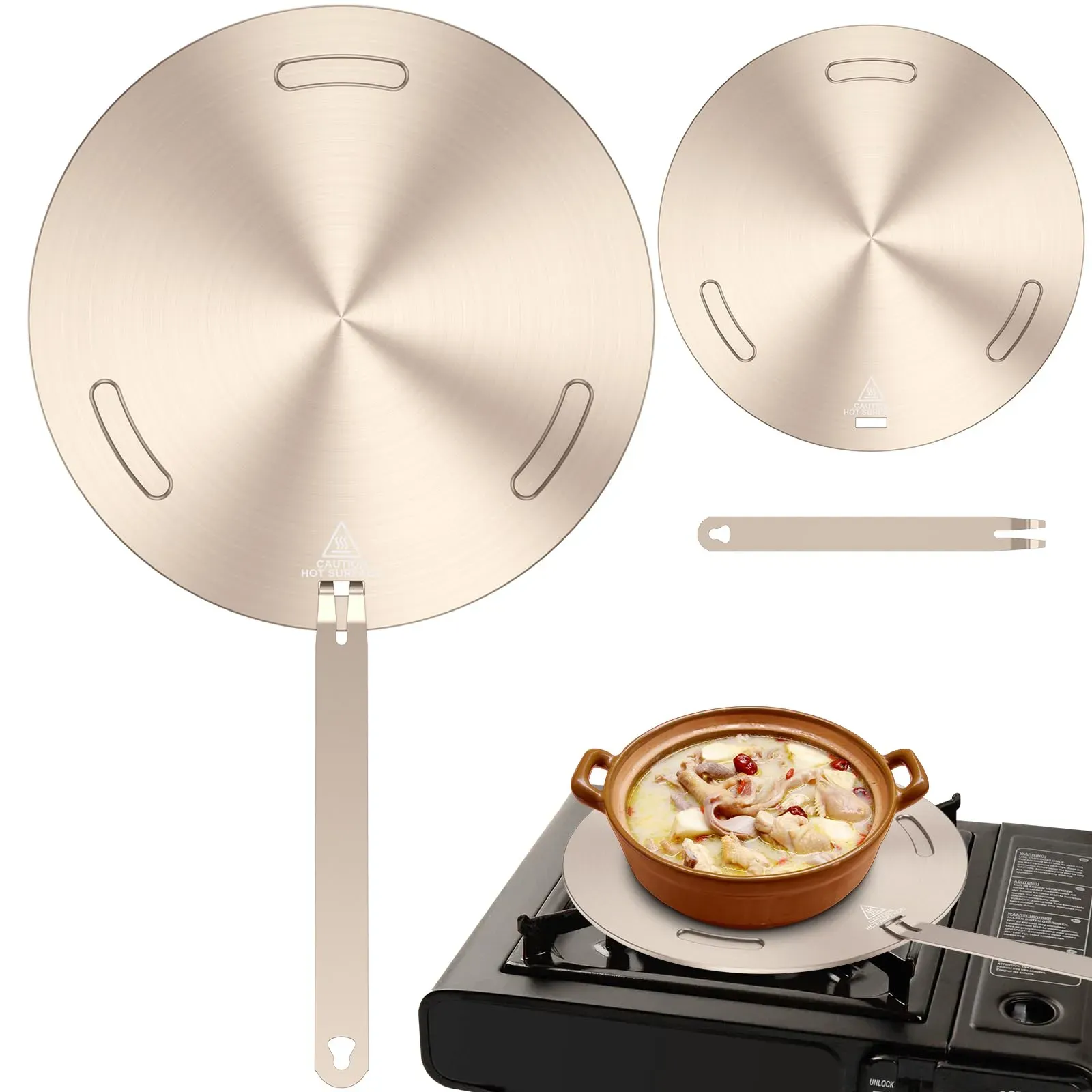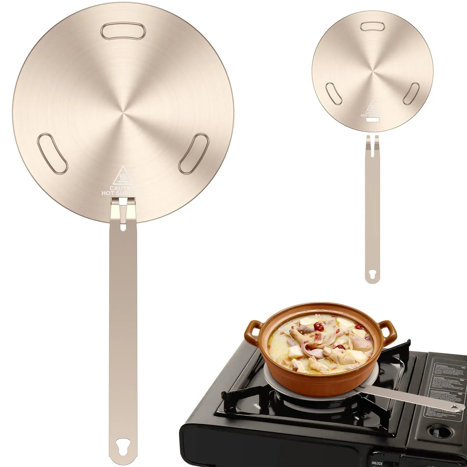 Kategorie: Zubehör für Töpfe & Pfannen - bobash - Wärmeleitplatte für Gasherd Die Wärmeleitplatte aus Edelstahl kann zum Erhitzen und Auftauen von Lebensmitteln verwendet werden und die Wärme gleichmäßig leiten. Die Wärmeverteilungsplatte hat eine gute Leistung bei der Steuerung und Wärmeverteilung des Gasherdes. Wir haben 3 Größen zur Auswahl: Durchmesser 16 cm/20 cm/24 cm, Dicke 3,4 mm, die Sie nach Ihren Bedürfnissen kaufen können. Abnehmbarer Griff: Ausgestattet mit abnehmbarem Verbrühungsschutz für einfachen Transport und Lagerung. Geeignet für Haushaltsküchen, Restaurantküchen, Camping und Picknicks. Warme Erinnerung: Es ist normal, dass die Oberfläche des Kühlkörpers nach Gebrauch die Farbe ändert. Schützen Sie Ihre Küchengeräte Der Induktionsadapter besteht aus Edelstahl und einer supraleitenden Aluminiumlegierung. Es besteht aus drei Schichten, die oberen und unteren Schichten sind aus Edelstahl, während die mittlere Schicht aus einer supraleitenden Aluminiumlegierung für eine gute Wärmeverteilung besteht. Daher funktioniert die wärmeleitende Platte gut, um den Boden des Kochgeräts vor Beschädigungen zu schützen. Breites Anwendungsspektrum Induktionsplatte mit Griff, geeignet für Gasherde, Gasherde, Elektroherde, öfen usw. Geeignet für wärmeleitende Eisenpfanne, emaillierte Töpfe, Kupfertöpfe, Edelstahltöpfe, Kaffeemaschinen, Glaskochtöpfe, Auflaufformen, Milchkännchen, Mokka usw. Gut in der Küche Universal-Adapterplatte für Induktionskochfeld ist, dass die ... Mit 11,39 Euro ist dieser Adapter eine preiswerte Option, die eine dreischichtige Struktur aus Edelstahl und supraleitendem Material verspricht. ![]() ![]() Induktionswandlerscheibe, Induktionsadapter Suchplatte | Wärmeinduktionsdiffusorplatte, Kochfeld -Wärmediffusor, Herdwandlerscheibe Haltbaren Dreischichtstruktur Aus 430 Edelstahl- Und Supraleitenden