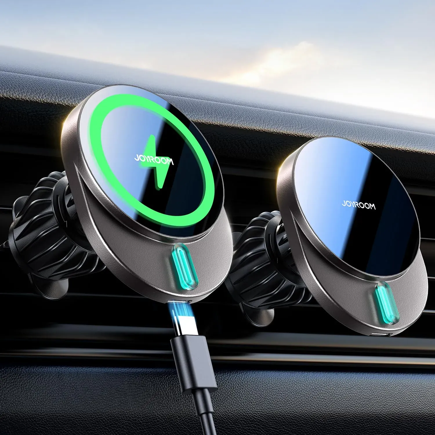 Kategorie: KFZ Einbau - Joyroom - Einhandbedienung Genießen Sie den Komfort einer Ein-Klick-Bedienung für einfaches Platzieren und Entfernen des Telefons. JOYROOM Magsafe ladegerät auto sorgt für ein sicheres Freisprecherlebnis und vermeidet außerdem den ärger mit verhedderten Kabeln oder Leitungen. Magnetstärke & Schnelles Laden 20 superstarke N55 Magnete sind in Doppelschichten angeordnet, um eine starke Magnetkraft zu erreichen. Selbst wenn Sie auf unebenen Straßen fahren, stark bremsen oder scharf abbiegen, fällt das Telefon nicht so leicht herunter. Gleichzeitig kann der Handy-Akku mit einer Ladegeschwindigkeit von bis zu 15 W in weniger als 3 Stunden vollständig aufgeladen werden. Tipp: Zum Schnellladen ist ein QC 3.0-Autoladegerät erforderlich (nicht im Lieferumfang enthalten) Hervorragendes Design JOYROOM Magsafe autohalterung besteht aus glattem CD Spiegelmaterial, das verschleißfest und exquisit ist. Eisblaues Umgebungslicht erleichtert das Auffinden Ihres Geräts auch in dunklen Umgebungen. Und das ovale Rennstrecken-Design bietet Ihnen eine lebendige und modische Fahratmosphäre. 360 Drehung & Einfache Installation Unser wireless charger auto verfügt über ein 360 -Kugelgelenk. Sie können es drehen, um die Richtung des Telefons nach Belieben anzupassen und so sicherzustellen, dass sich das Telefon immer in Ihrem bevorzugten Winkel befindet. Es ist auch einfach zu installieren: Schrauben Sie es einfach heraus und wieder hinein, um den Haken sicher an der ... ![]() ![]() JOYROOM Magsafe Autohalterung mit Ladefunktion, Lüftung Handyhalterung Auto Induktives 15W Schnelles Laden, iPhone Magsafe Ladegerät Auto für iPhone 16 15/14/13/12 Serie