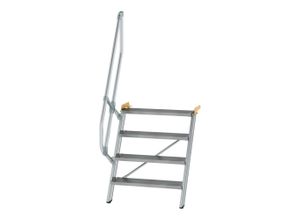 Leitern Gerüste Wohnen Haus Garten Heimwerken - - Industrietreppe, Stahl-Lochblechstufen, Stufenbreite 600 mm, 4 Stufen. Anlieferung = montiert. Ausladung = 960 mm. Senkrechte Höhe = 830 mm. Stufenanzahl = 4 Stück. Stufenmaterial = Stahlblech, gelocht. Stufenbreite = 600 mm. Stufentiefe = 225 mm. Gestellmaterial = Aluminium Strangpressprofil. Lieferumfang = einseitiger Handlauf. Neigungswinkel = 45°. Plattformhöhe = 830 mm. Produkttyp = Industrie-Treppen. Bequemer Aufstieg - 45° Neigungswinkel. Robuste verwindungssteife Stufen. Holme aus Strangpressprofilen. Am oberen Ende zwei Auflagewinkel, unten rutschfeste Kunststoffschuhe. Ein Geländer inklusive, rechts oder links montierbar. Zweites Geländer als Zubehör. Für Wohnzwecke nach DIN 18065 nicht einsetzbar. Zwischengrößen sowie komplette Sonderkonstruktionen auf Anfrage. - Versandkostenfrei: true - Lieferzeit: 2 Wochen - - - bei Kaiserkraft - gefunden von shopping24 Diese MUNK Aluminium-Treppe mit 7 Stufen und 45° Neigung ist eine solide und preisgünstige Option für den Einstieg in den Bereich der Industrietreppen. ![]() 342032 / Contorion MUNK Aluminium-Treppe Stufen 45° 7 Stufen (600267)