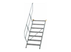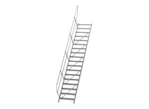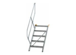 Leitern Gerüste Wohnen Haus Garten Heimwerken - - Industrietreppe, Alu-Stufen, Stufenbreite 600 mm, 12 Stufen. Anlieferung = montiert. Ausladung = 2640 mm. Senkrechte Höhe = 2500 mm. Stufenanzahl = 12 Stück. Stufenmaterial = Aluminium, geriffelt. Stufenbreite = 600 mm. Stufentiefe = 240 mm. Gestellmaterial = Aluminium Strangpressprofil. Lieferumfang = einseitiger Handlauf. Neigungswinkel = 45°. Plattformhöhe = 2500 mm. Produkttyp = Industrie-Treppen. Bequemer Aufstieg - 45° Neigungswinkel. Robuste verwindungssteife Stufen. Holme aus Strangpressprofilen. Am oberen Ende zwei Auflagewinkel, unten rutschfeste Kunststoffschuhe. Ein Geländer inklusive, rechts oder links montierbar. Zweites Geländer als Zubehör. Für Wohnzwecke nach DIN 18065 nicht einsetzbar. Zwischengrößen sowie komplette Sonderkonstruktionen auf Anfrage. - Versandkostenfrei: true - Lieferzeit: 2 Wochen - - - bei Kaiserkraft - gefunden von shopping24 Die MUNK Aluminium-Treppe mit 8 Stufen und 45° Neigung ist eine hochwertige Option für anspruchsvollere Anwendungen, bei denen eine größere Höhe überbrückt werden muss. ![]() 342032 / Contorion MUNK Aluminium-Treppe Stufen 45° 8 Stufen (600268)