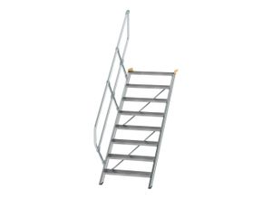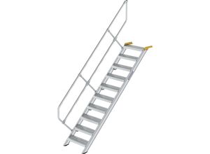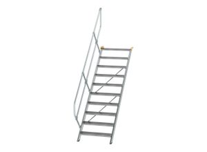 Leitern Gerüste Wohnen Haus Garten Heimwerken - - Industrietreppe, Stahl-Lochblechstufen, Stufenbreite 600 mm, 10 Stufen. Anlieferung = montiert. Ausladung = 2220 mm. Senkrechte Höhe = 2080 mm. Stufenanzahl = 10 Stück. Stufenmaterial = Stahlblech, gelocht. Stufenbreite = 600 mm. Stufentiefe = 225 mm. Gestellmaterial = Aluminium Strangpressprofil. Lieferumfang = einseitiger Handlauf. Neigungswinkel = 45°. Plattformhöhe = 2080 mm. Produkttyp = Industrie-Treppen. Bequemer Aufstieg - 45° Neigungswinkel. Robuste verwindungssteife Stufen. Holme aus Strangpressprofilen. Am oberen Ende zwei Auflagewinkel, unten rutschfeste Kunststoffschuhe. Ein Geländer inklusive, rechts oder links montierbar. Zweites Geländer als Zubehör. Für Wohnzwecke nach DIN 18065 nicht einsetzbar. Zwischengrößen sowie komplette Sonderkonstruktionen auf Anfrage. - Versandkostenfrei: true - Lieferzeit: 2 Wochen - - - bei Kaiserkraft - gefunden von shopping24 Diese MUNK Industrietreppe mit 12 Alu-Stufen und 600 mm Stufenbreite kombiniert Leichtigkeit mit einer höheren Stufenzahl für vielseitige Anwendungen. ![]() MUNK Industrietreppe, Alu-Stufen, Stufenbreite 600 mm, 12 Stufen