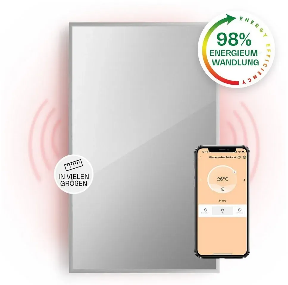 lieferbar-in 2-3 Werktagen bei dirKlarstein Heizkörper La Palma Smart 1000 W silver, elektrische Infrarot Wandheizung Spiegel Thermostat Heizung elektrisch silberfarben