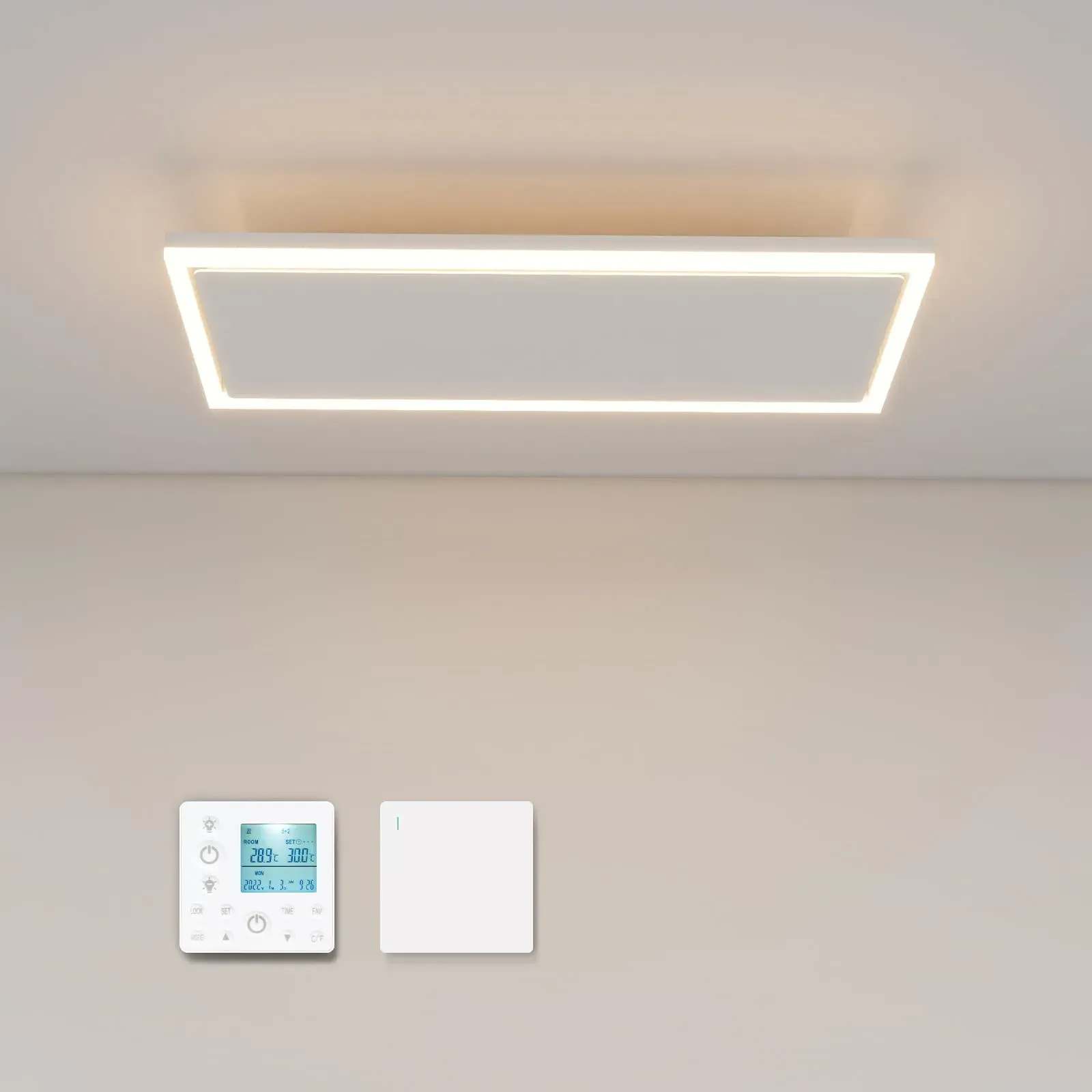 Sofort lieferbar, 3-6 Werktage in_stockBYECOLD Infrarotheizung Deckenmontage 700 Watt, Deckenheizung Infrarot mit led Beleuchtung, Infrarotheizung Decke mit Thermostat, App Fernbedienung