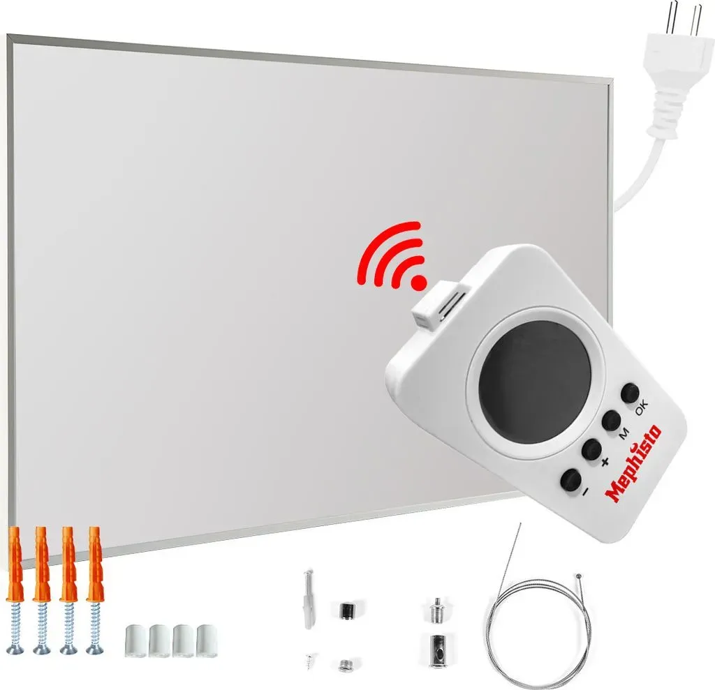 Infrarot-Heizungen Heizkörper Heim & Garten Haushaltsgeräte Klimatisierung Raumheizgeräte - EAN:4061777092465 - Hochwertige Qualität made in Europe Die BRAST Infrarotheizung beeindruckt mit zuverlässig hoher Qualität made in Europe: * Made in Europe: Herstellung der Heizung in Europa * In Europa entwickelt und produzierte Spezial-Heizfolie für eine gleichmäßige Wärmeverteilung über den gesamten Heizkörper * Gehäuse aus galvanisiertem Stahl * Strahlungsintensive Oberflächenstruktur des Stahlgehäuses zur perfekten Wärmeverteilung und Oberflächenwärme Hoher Wirkungsgrad Unsere Infrarot Heizung bietet nicht nur eine behagliche Raumtemperatur, sondern zeichnet sich auch durch einen außergewöhnlich hohen Wirkungsgrad aus: * Optimaler Wirkungsgrad dank durchdachter Konstruktion * Wandelt nahezu 100% der eingesetzten Energie in Wärmeleistung um * Längere Speicherung und konstante Abgabe der Wärme durch Infrarot * Geringer Wärmeverlust durch Rückseitenisolierung * 300 Watt Modell ideal für Räume bis 6m² Flexibler Einsatz Damit sich Ihre neue Heizung nahtlos in Ihr Zuhause einfügt und ein harmonisches Gesamtbild ergibt, achten wir auf praktische Aspekte: * Ultraflache Bauweise mit nur 2,5cm Tiefe * Sofort einsatzbereit: Anschluss an jede übliche Haushaltssteckdose * Inkl. Wandhalterung zum einfachen Anbringen der Heizung an Wand, Decke oder Dachschräge * Wandmontage horizontal oder vertikal möglich * Nützliche Kabellänge von 1,9m * Praktischer An-/Ausschalter * Passendes Standsystem ... Dieses Modell bietet 500 Watt Leistung und eine praktische WIFI-App-Steuerung inklusive Deckenmontage-Set. ![]() ![]() Mephisto Infrarotheizung inkl. Fernbedienung und Thermostat WIFI APP Steuerung 500W, inkl. Deckenmontage-Set