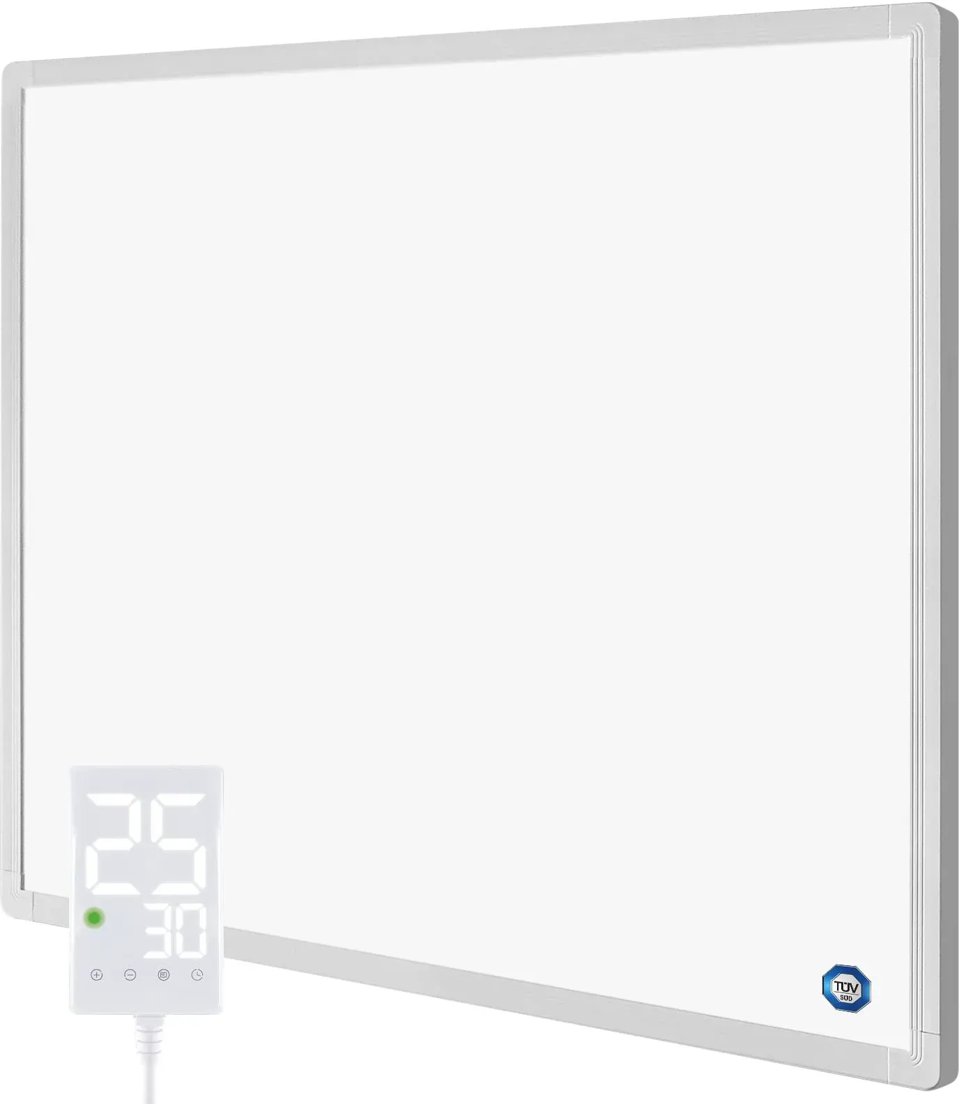 Infrarot-Heizungen Heizung & Sanitär Elektroheizungen Infrarot-Heizkörper - EAN:6971299703207 - Allgemeine Beschreibung Die Byecold Infrarotheizung mit 580 Watt bietet eine angenehme Strahlungswärme, die der natürlichen Sonnenwärme ähnelt. Diese Heiztechnik sorgt dafür, dass sowohl Personen als auch Gegenstände im Raum die Wärme absorbieren, was zu einem gleichmäßigen und komfortablen Raumklima führt. Selbst nach dem Ausschalten der Heizung bleibt die Temperatur im Raum stabil, da die gespeicherte Wärme langsam wieder abgegeben wird. Technische daten Leistung: 580 Watt Geeignet für Räume von 6-8 m² Abmessungen: nicht spezifiziert Kompatibilität und Zubehör Fernbedienung zur Steuerung von Temperatur und Timer WLAN-Funktion für App-Steuerung Installation Platzsparende Wandmontage Direkte Befestigung an der Wand, ideal für Schlafzimmer, Büros oder kleinere Wohnungen Anwendung Kann als Haupt- oder Zusatzheizung verwendet werden Geeignet für Allergiker durch leise und staubfreie Wärmeabgabe Ideal für ruhige Räume wie Schlafzimmer oder Büros Weitere Informationen - gefunden von Kelkoo Dieses Modell bietet eine gute Leistung von 700 Watt und eine praktische WLAN-Steuerung für mehr Komfort. ![]() ![]() Wiltec Infrarotheizung 700 Watt inkl. WLAN-Thermostat, energieeffizienter Heizkörper mit WLAN Steuerung, Wandmontage Elektroheizung, Heizpaneel IR
