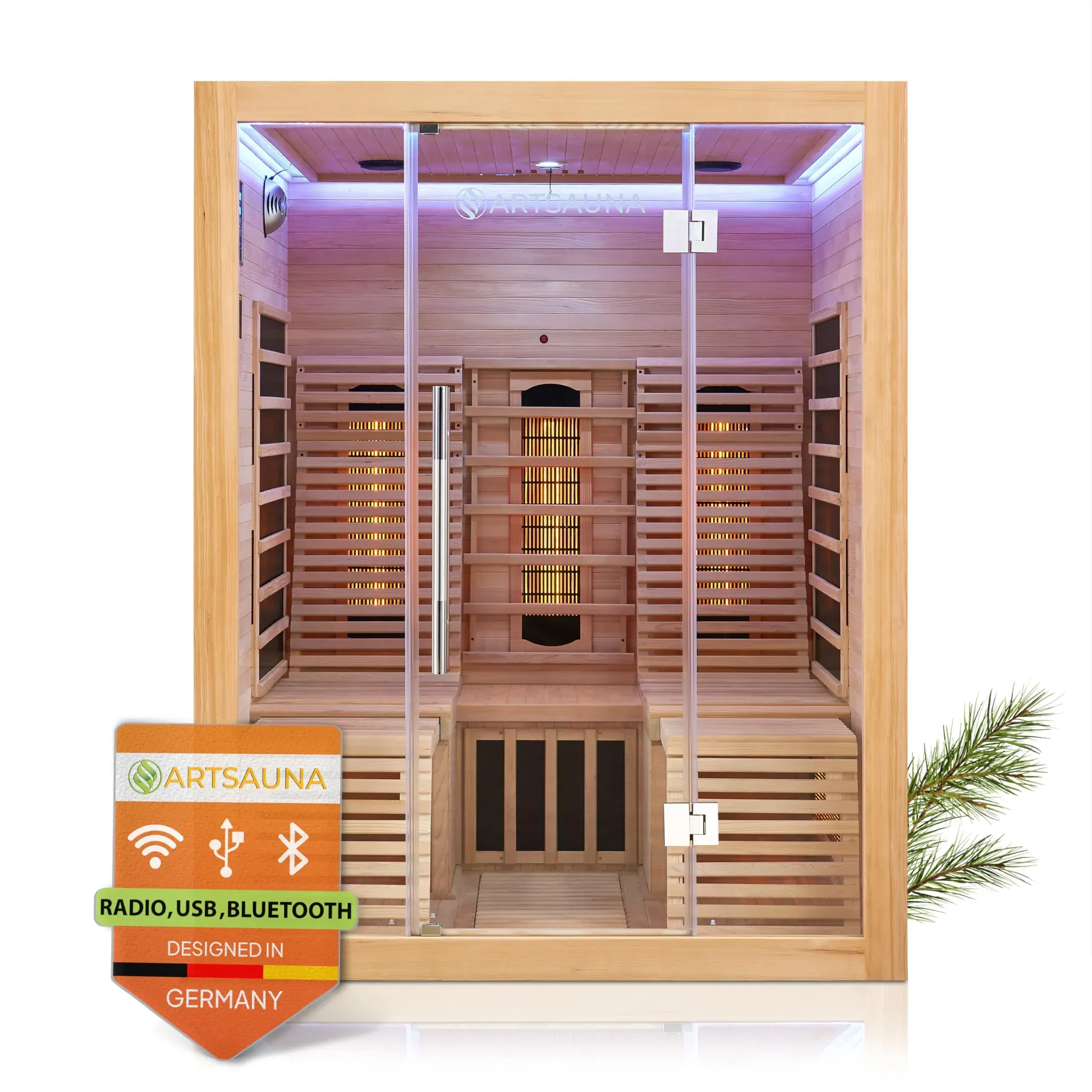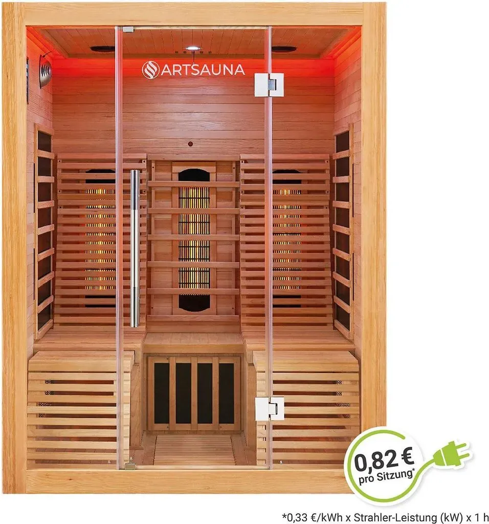 Verfügbarkeit: Auf Lager - Kategorie: Wärmekabinen - Artsauna - GTIN:4260565528944 - œ Wellness für Zuhause: Infrarotkabine 150x150x190 cm mit 2 Liegen und 1 Bank; 4 Flächen-, 5 Vollspektrumstrahler für gezielte Bestrahlung und wohltuende Wärme; positive Wirkung bei Verspannungen œ Hochwertiges Material: Infrarotsauna aus beständigem Hemlocktannenholz; hervorragende Wärmedämmkapazitäten & natürliche Unempfindlichkeit gegen Feuchtigkeit; schafft angenehmes Klima in der Kabine œ Stimmungsvolles Ambiente: Wärmekabine mit indirektem LED-Farblicht für perfekte Wohlfühl-Atmosphäre; eingebauter Ionisator für saubere Luft; effektiv gegen Gerüche, Schimmel & Keime œ Modernes Hi-Fi-System: Infrarotkabine mit Radio, Bluetooth & USB-Anschluss; einfache Bedienung dank Soft-Touch-Bedienpanel & Timerfunktion; bequem zurücklehnen & Wärmebad genießen œ Schneller Zusammenbau: IR-Kabine aus fertigen Grundelementen; Zusammenbau dank bewährtem Klicksystem in 30 - 60 Minuten; kein Starkstromanschluss benötigt; einfache 230 Volt Steckdose genügt - 1699,00 Euro bei Amazon Marketplace Home Improvement - gefunden von billiger.de ![]() ![]() Artsauna Infrarotkabine Helsinki 150 - Infrarotsauna 150x150 cm mit Dual-Technologie, LED-Farblichttherapie & 2 Liegen für 3 Personen - Wärmekabine