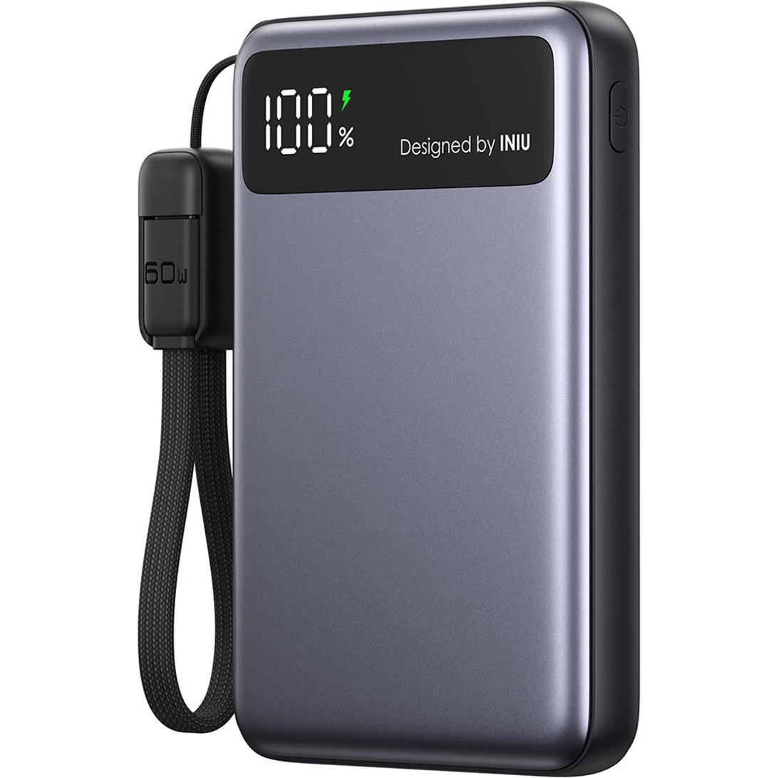 Auf Lager Versand durch AmazonINIU 45W Power Bank, 10000mAh Schlank Powerbank mit integriertem USB-C Kabel, High-Speed portables Ladegerät USB C In&Out, Akkupack für iPhone 16 15 14 13 Samsung Xiaomi MacBook