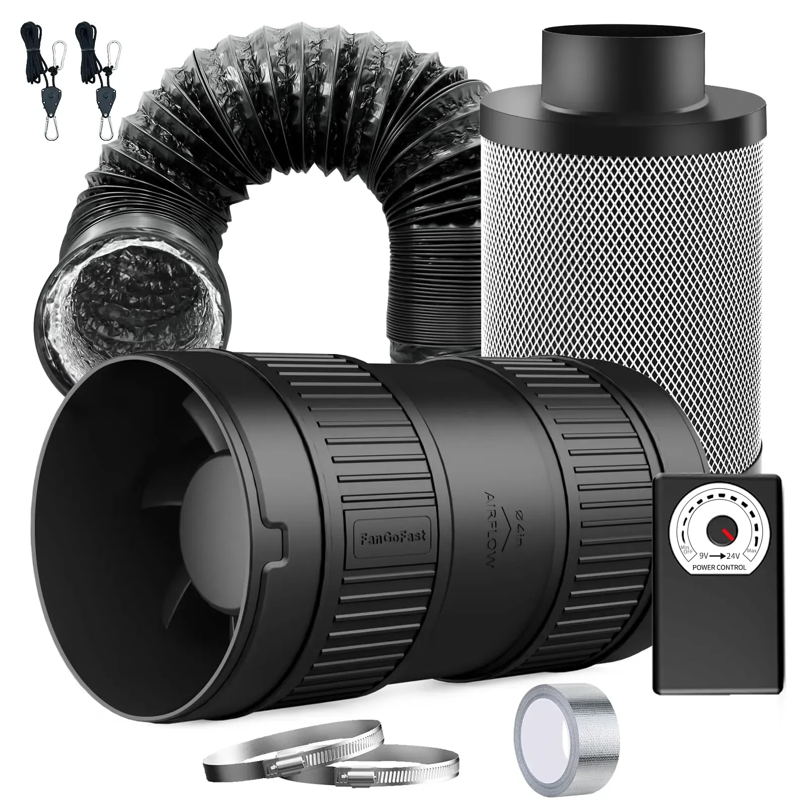 Auf Lager Versand durch AmazonHon&Guan 100mm Lüftungsset 221m³/h Inline Rohrventilator Komplettset mit Drehzahlsteller Aktivkohlenfilter Abluftchlauch Gummimuffe, Belüftungssystem für Growzelt Growbox Gewächshaus