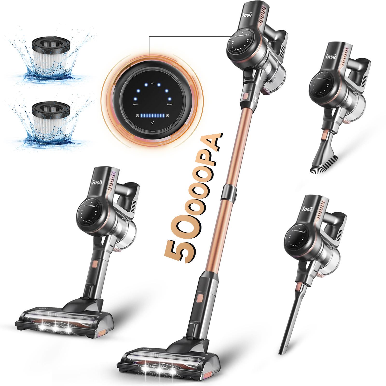 Auf Lager Versand durch AmazonINSE Akku Staubsauger, 25KPa Staubsauger Kabellos 10 in 1, bis zu 45 Min, 1,2L großer Müllbox, Abnehmbarer Akku, Teleskopstange&LED-Elektrobürste, für Holzböden Tierhaare
