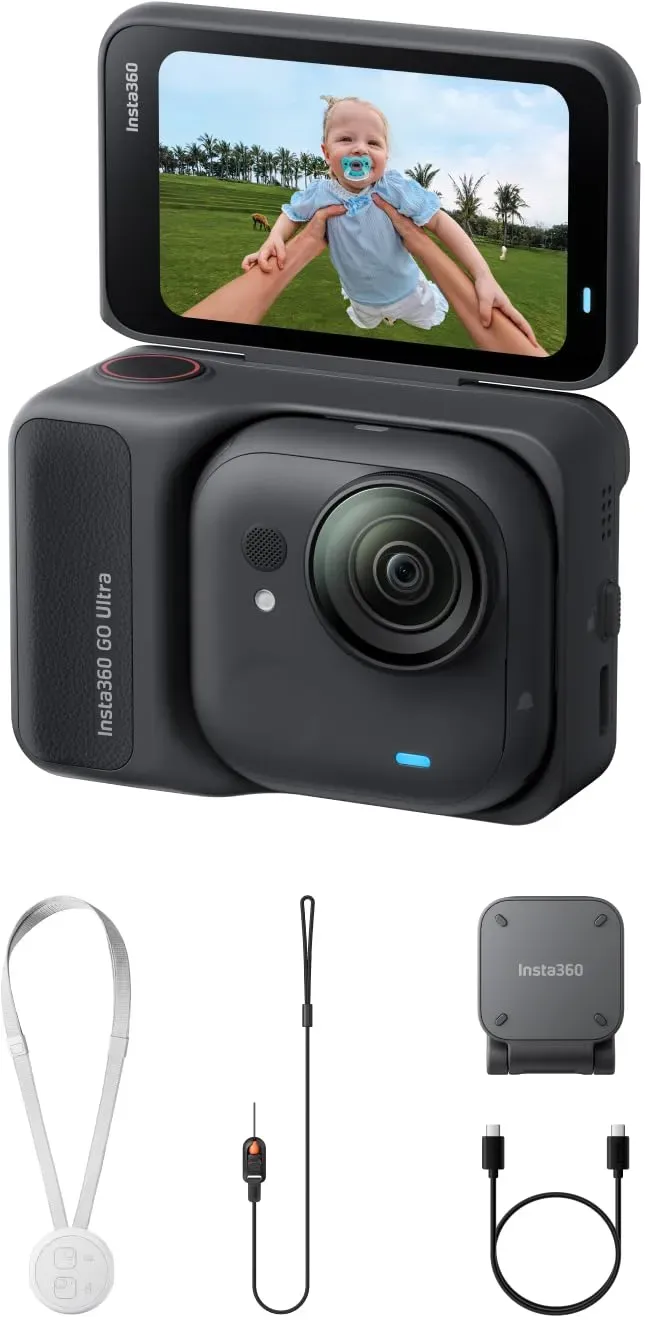 Insta360 go ultra META PreisvergleichMit dem Meta-Preisvergleich suchen Sie gleichzeitig bei den großen Preisvergleich Portalen!Jetzt live Suche nach insta360 go ultra starten! Insta360 go ultra KaufberatungDie Insta360 GO Ultra ist eine kompakte Action-Kamera mit einem größeren 1/1,28" Sensor, die 4K-Video mit 60 fps (4K60) aufnimmt und über einen 5-nm-KI-Prozessor verfügt. Sie wiegt 53 g, hat ein 156° Sichtfeld, ist bis 10 m wasserdicht und unterstützt microSD-Karten bis 2 TB, was gegenüber der Vorgängerin GO 3S mit festem Speicher ein großer Vorteil ist[1][3][5]. Wichtige Produktmerkmale und Vorteile der GO Ultra sind: