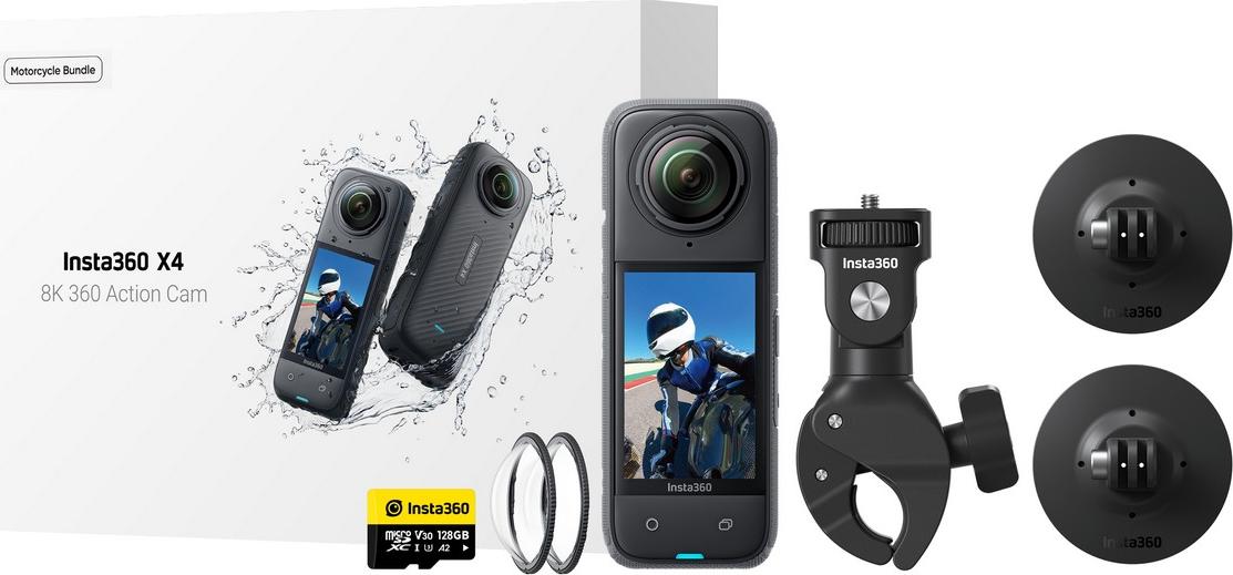 keine Angabe Versand durch AmazonInsta360 X4 Motorrad-Bundle ? wasserdichte 8K 360°-Action-Cam, 4K Weitwinkelvideos, Unsichtbarer Selfie-Stick, Abnehmbarer Linsenschutz, 135 min Akkulaufzeit, KI-Bearbeitung, Stabilisierung