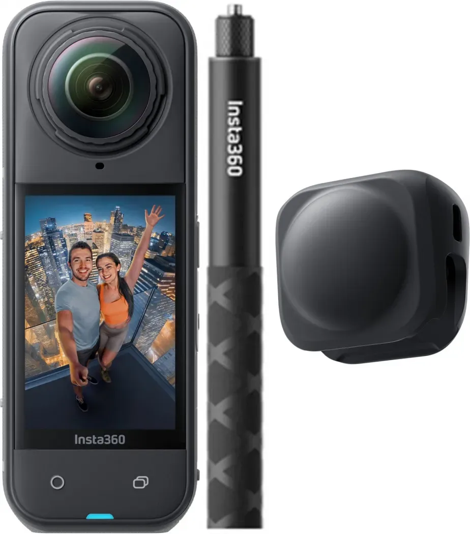Gesamtsortiment IT + Multimedia Foto + Video Videografie Action Cam Kameras - EAN:6977644763612 - Die Insta360 X5 ist eine hochmoderne Action-Kamera, die für anspruchsvolle Aufnahmen in 8K Ultra HD konzipiert wurde. Mit einer maximalen Videoauflösung von 7680 x 3840 Pixeln und einer beeindruckenden Framerate von bis zu 120 fps ermöglicht sie die Erfassung von dynamischen Szenen in gestochen scharfer Qualität. Die Kamera verfügt über einen 25,4 mm grossen Bildsensor, der eine maximale Bildauflösung von 11904 x 5952 Pixeln bietet, was sie ideal für die Erstellung von hochauflösenden Fotos macht. Der 360°-Blickwinkel eröffnet kreative Möglichkeiten für immersive Aufnahmen, während die umfangreiche ISO-Empfindlichkeit von 100 bis 3200 eine flexible Anpassung an verschiedene Lichtverhältnisse ermöglicht. Die Insta360 X5 ist zudem wasserdicht bis zu einer Tiefe von 15 Metern, was sie zu einem perfekten Begleiter für Abenteuer in der Natur macht. - Maximale Videoauflösung von 7680 x 3840 Pixeln bei 120 fps - 360° Blickwinkel für immersive Aufnahmen - Wasserdicht bis zu 15 m für Outdoor-Abenteuer - Hohe Bildauflösung von 11904 x 5952 Pixeln - Umfangreiche ISO-Empfindlichkeit von 100 bis 3200. - gefunden von Kelkoo Das Essentials Bundle von Galaxus.de bietet ein ausgewogenes Paket mit wichtigen Zubehörteilen für die Insta360 X5. ![]()