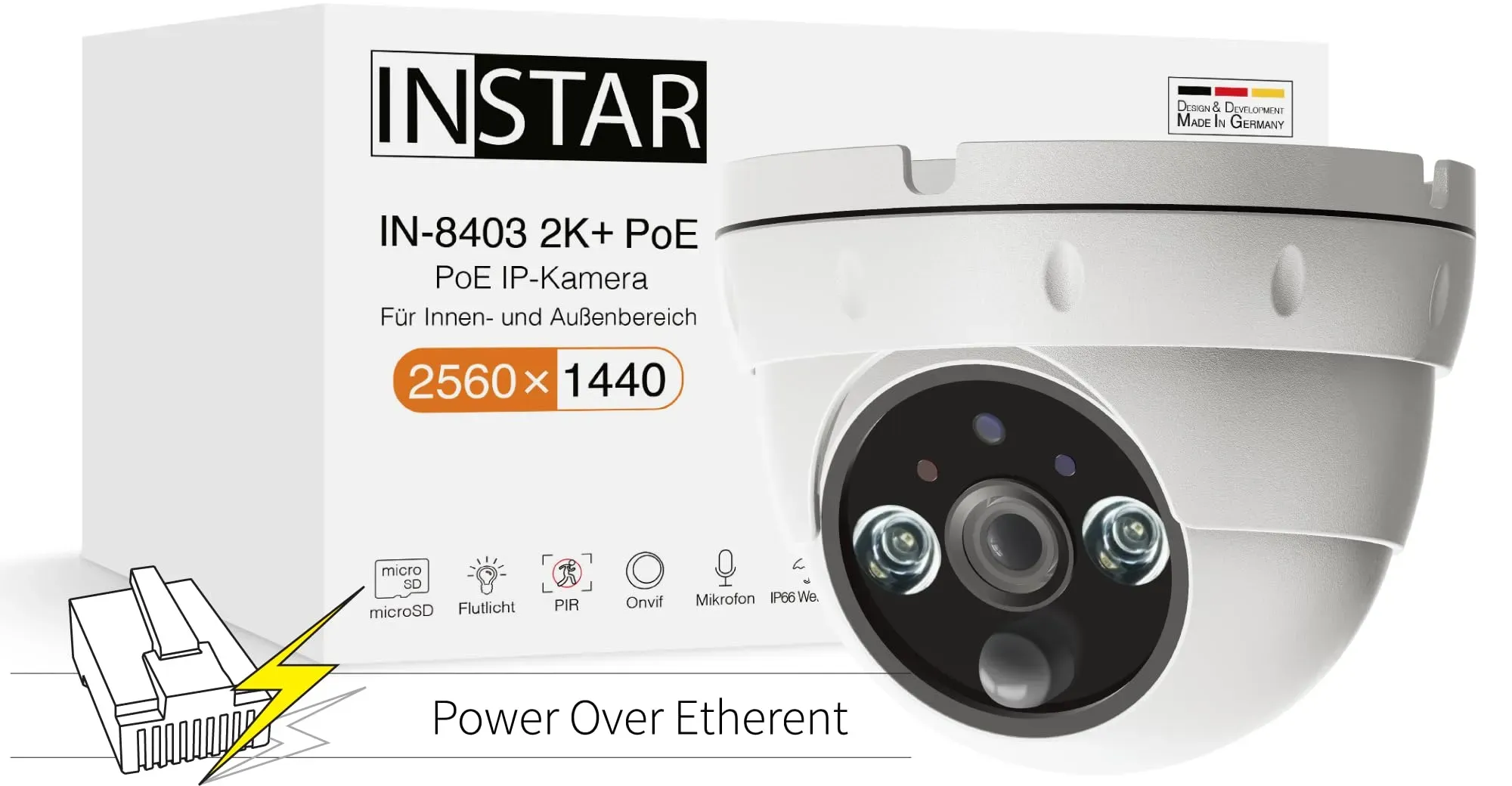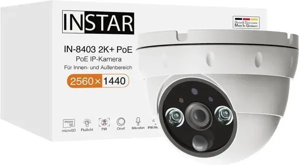 Kategorie: überwachungskameras - INSTAR - GTIN:4260591891036 - Sony STARVIS 2K+ Bildsensor (2560 x 1440p) mit 90 Grad Weitwinkelobjektiv Künstliche Intelligenz mit AI basierter Objekterkennung (Mensch, Fahrzeuge, Tiere) Integrierter PIR Wärmesensor und eingebautes Mikrofon mit Geräusch und Echo Unterdrückung Unterstützt HTTPS, FTPS und SFTP Verschlüsselung sowie Speicherkarten bis max. 256GB 2,4Ghz und 5Ghz WLAN Modul mit neuer WPA3 Verschlüsselung - 124,99 Euro bei Amazon Marketplace Home Improvement - gefunden von billiger.de Dieses Angebot ist eine preiswerte Option für eine LAN IP Überwachungskamera mit PoE und 2K+ Auflösung. ![]() ![]() INSTAR IN-8403 2K+ POE ws 14082 LAN IP überwachungskamera 2560 x 1440 Pixel