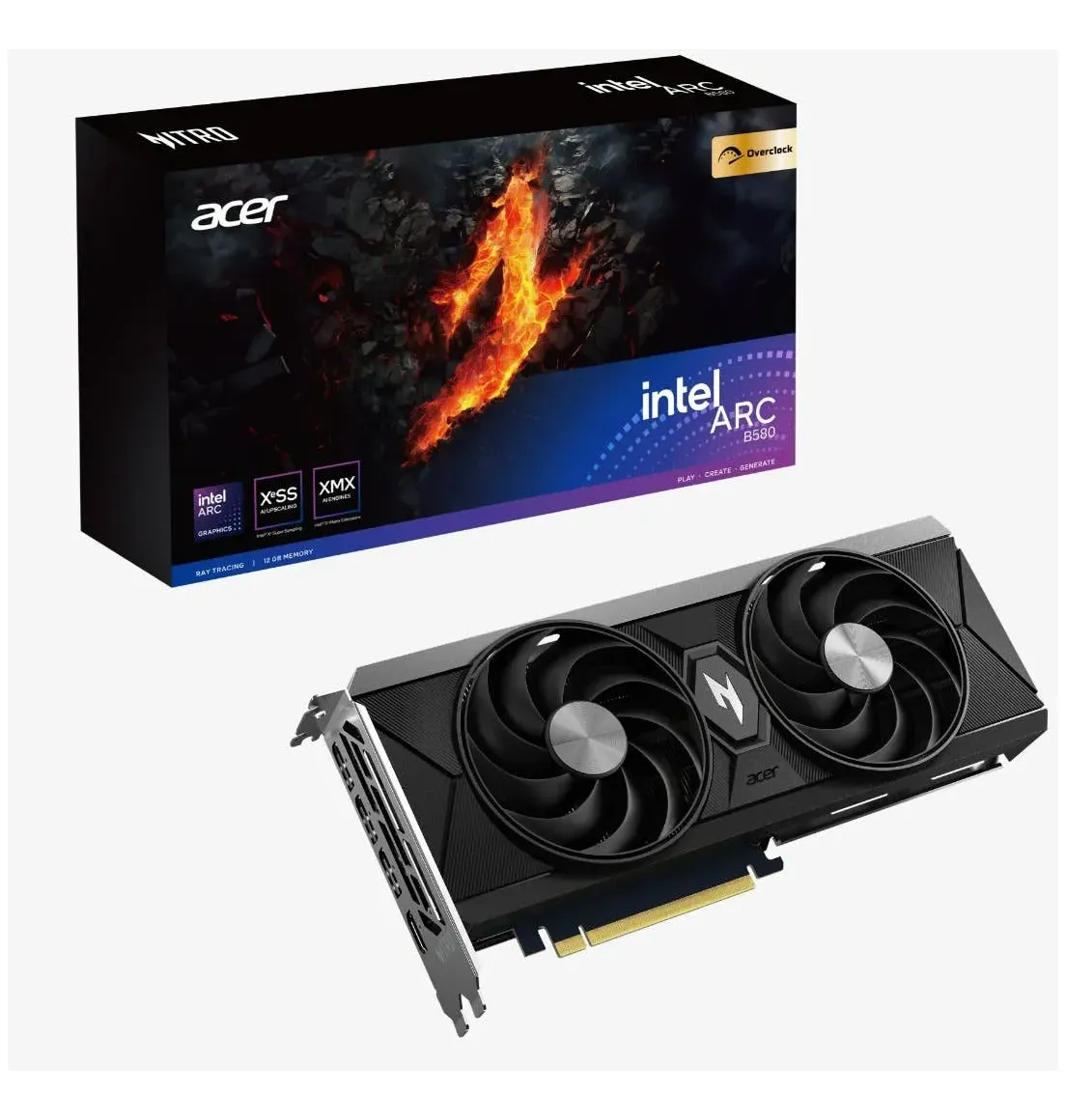 Gesamtsortiment IT + Multimedia PC Komponenten Grafikkarte Grafikkarten - EAN:4711474221148 - Die Acer Nitro Intel Arc B580 OC 12 GB ist eine Grafikkarte mit der Arc B580 GPU von Intel. Die leistungsfähigen GeForce Arc B580 GPU-Grafikkartenserie basiert auf der Intel Arc Battlemage Architektur und bietet hohe Stufen von Gaming Realismus, Geschwindigkeit und Leistungseffizienz und realistische VR-Erlebnisse. - gefunden von Kelkoo Die Intel Arc B580 Limited Edition von Galaxus.de ist eine gute Option für alle, die das Originaldesign bevorzugen. ![]() ![]()