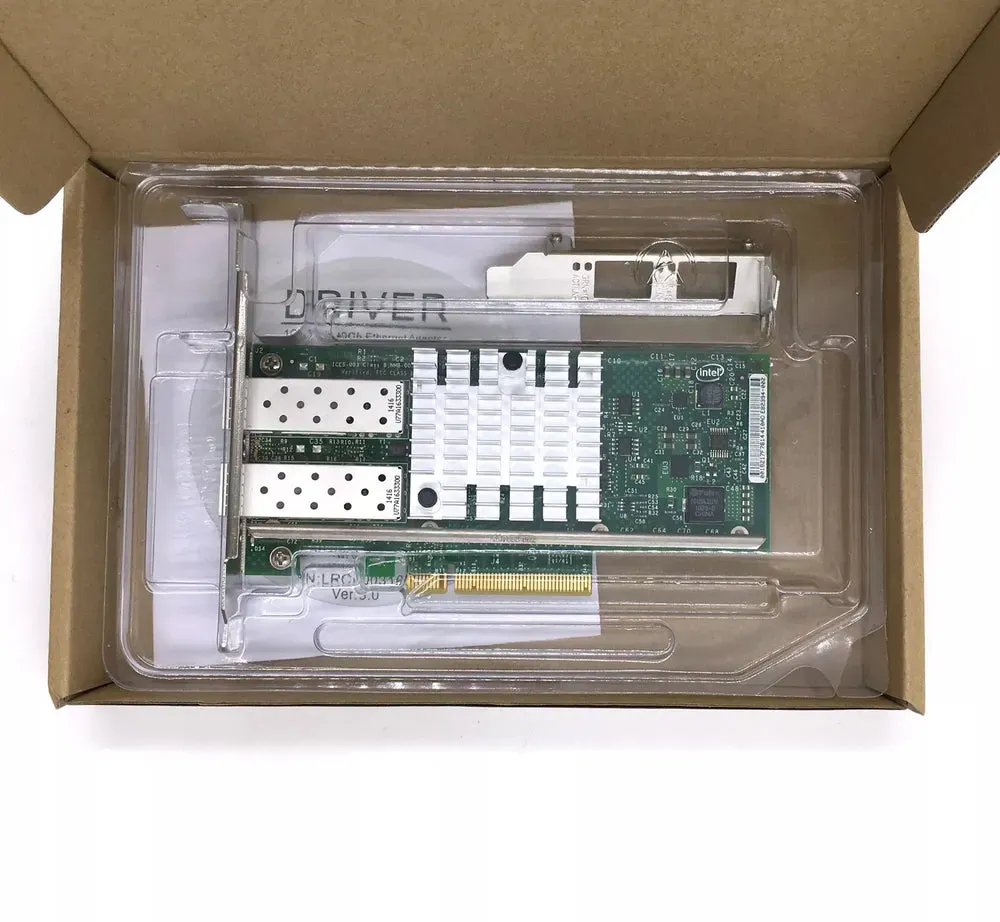 Zustand: Gebraucht - Peripherals & Accessories - 10Gtek - X520-DA2(Intel-1pc)(UK) 10Gtek X520-DA2 - EAN: 0603149407824 - Attention: 1) If you use it for Windows11, you should install the Windows 10 driver and follow the direction of 'how to set up Windows 11' to set up. 2) The Dell and HPE servers require MCU info matching the host OS; however, this NIC doesn't satisfy. Please contact us before making a purchase. NOTE: NON SUPPORT 1.25G SFP; NON SUPPORT HOT SWAPING! Controller: Intel 82599ES controller, supports single-root I/O virtualization (SR-IOV) and Intel Data Direct I/O Technology (Intel DDIO) to improve network performance. System: Windows Server 2012/2016/2019, Windows7/8/10, Linux, VMware ESX/ESXi 5/6/7, FreeBSD 11/12/13/14, Ubuntu 20/22. Spec.: Dual SFP+ ports, connect to SFP+ modules/DAC/AOC. Full height and low profile bracket for standard computer and servers. - 1 Händler im amazon.de Marketplace Ein solides Angebot für einen Intel X520-DA2 Ethernet Server Adapter zu einem mittleren Preis. ![]() ![]() Intel X520-DA2 Ethernet Server Adapter (PCI Express 2.0 x8 Low Profile, 10 Gigabit Ethernet, 2 Anschlüsse)