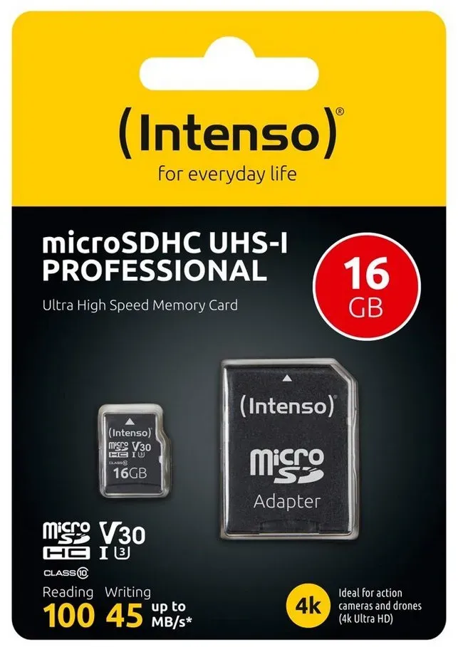 lieferbar-in 2-3 Werktagen bei dirIntenso Micro SDHC Karte 16GB UHS-I U3 4K professional 100 MB/s V30 Class 10 Speicherkarte