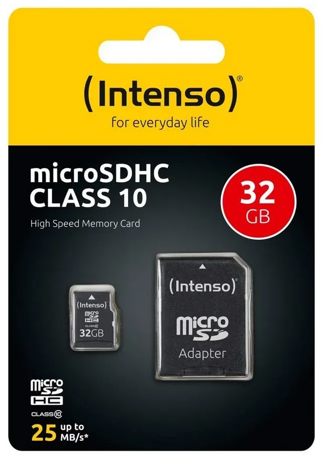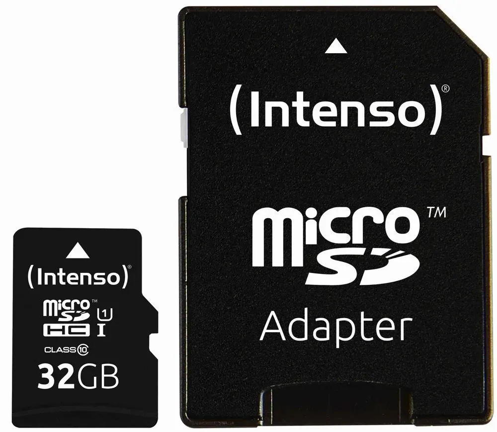 Zustand: Neu - Micro SD Micro SD Speicherkarten - Intenso - 3424480 - EAN: 4034303031610 - Kapazität: 32 GB Flash Card Typ: MicroSD Interner Speichertyp: UHS-I, UHS Speed Klasse: Class 1 (U1) Schutzfunktion: Temperaturbeständig, Schockresistent, Wasserdicht, Röntgensicher Produktfarbe: Schwarz - 21 Händler im amazon.de Marketplace Dieses Angebot von Pollin.de ist eine preiswerte UHS-I Karte, die für viele Anwendungen ausreichend ist. Pollin.de