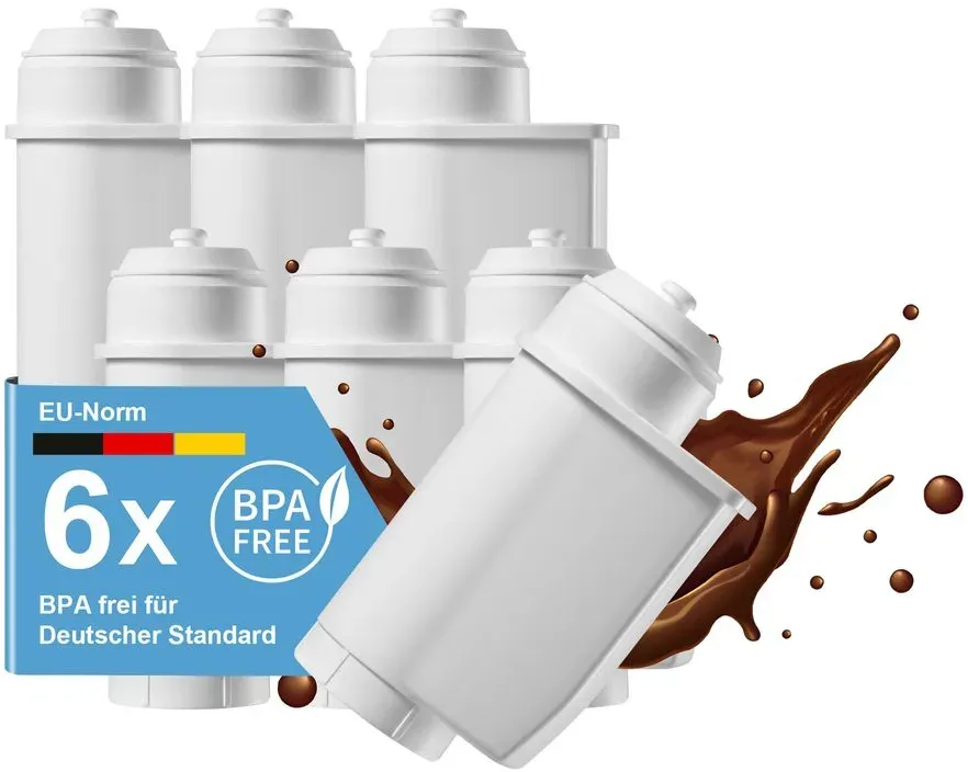 2 Händlerangebote bei billiger.de - Kategorie: Wasserfilter - filswa - Zubehör passend für , alle Kaffeevollautomaten der EQ Reihe: EQ3/5/6 Plus/7/8/9, Siemens TZ70003, TCZ70003, Bosch TCZ-7003, Ersatz für Brita Intenza Temial, 17000705; Bosch Vero, Weitere Vorteile , 100 % abgestimmt. Filtert 99 % des restlichen Chlors und der Schwermetalle heraus und verbessert die Wasserqualität deutlich. schützt so das Gerät. , Lieferumfang , 6er Set Wasserfilter , Einsatzgebiete , Kaffeevollautomaten, Packungsinhalt , 1 St., Gewicht , 610,00 g, Nettofüllmenge (Gewicht) , 610,00 g, Nettofüllmenge (Stück) , 6 St., Geeignet für , Zubehör für Geeignet für alle Kaffeevollautomaten der EQ, Gefahrenhinweise , Für beste Ergebnisse und kontinuierliche Erfrischung wird empfohlen, den Filter alle 2 Monate zu ersetzen, was von Ihrer Wasserqualität abhängt., - GTIN:4260582895647 ![]() ![]() filswa 6 Stück Wasserfilter für Siemens EQ Series, EQ5 EQ6 EQ7 EQ9, Wasserfilter Kaffeevollautomat für Brita Intenza 575491, Bosch Vero TZ70003/TCZ7003... - Weiß