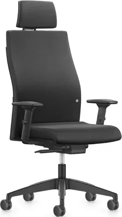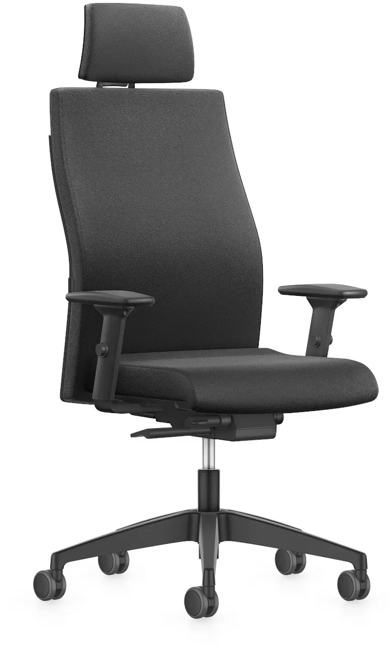 Kategorie: Bürostühle - Interstuhl - GTIN:4016849877112 - Auf einen Blick Interstuhl Ergonomic (179RS) Bürodrehstuhl mit Kopfstütze Kopfstütze verstellbar, Stoffbezogen Sitz und Rücken gepolstert und bezogen mit Stoff Lucia, 100% recyceltes Polyester, 100.000 Scheuertouren Synchronmechanik mit automatischer Gewichtsregulierung für Körpergewicht von 45 - 125 kg Sitzhöheneinstellung stufenlos von 42 - 54 cm Schiebesitz - von 40 bis 46 cm Sitztiefe (regulierbar) 4D T-Armlehnen, höhen-, breiten und tiefenverstellbar, schwenkbar, weich Sitzneigeeinstellung möglich um bis zu 3 Grad Lordosenstütze höhenverstellbar Fußkreuz aus Kunststoff schwarz Weiche Universalrollen für alle Bodenarten, 6,5 cm Durchmesser Bezug: Stoff Lucia Schwarz Lieferung erfolgt zerlegt im Karton zur einfachen Selbstmontage Der Interstuhl Ergonomic 179RS Bürostuhl mit Polsterücken und verstellbarer Kopfstütze hat eine ergonomisch geprägte Lordosenstütze. Durch die Höhenverstellbarkeit der Lordose kann die Stütze auf die jeweilige Körpergröße eingestellt werden. Die Lordosenstütze vermindert somit unnatürliche Körperhaltungen und passt sich der natürlichen Krümmung der Wirbelsäule an, insbesondere im Lendenwirbelbereich. Dies sorgt in Verbindung mit der Synchromechanik, der Sitzneigeeinstellung und den regulierbaren Schiebesitz für ein entspanntes Sitzen auf dem Interstuhl Ergonomic 179RS , besonders wenn die Sitzposition über längere Zeit aufrecht erhalten wird. Der Interstuhl Ergonomic 179RS ist mit ... ![]() ![]() Interstuhl Büromöbel GmbH & Co. KG Drehstuhl Runner 179RS
