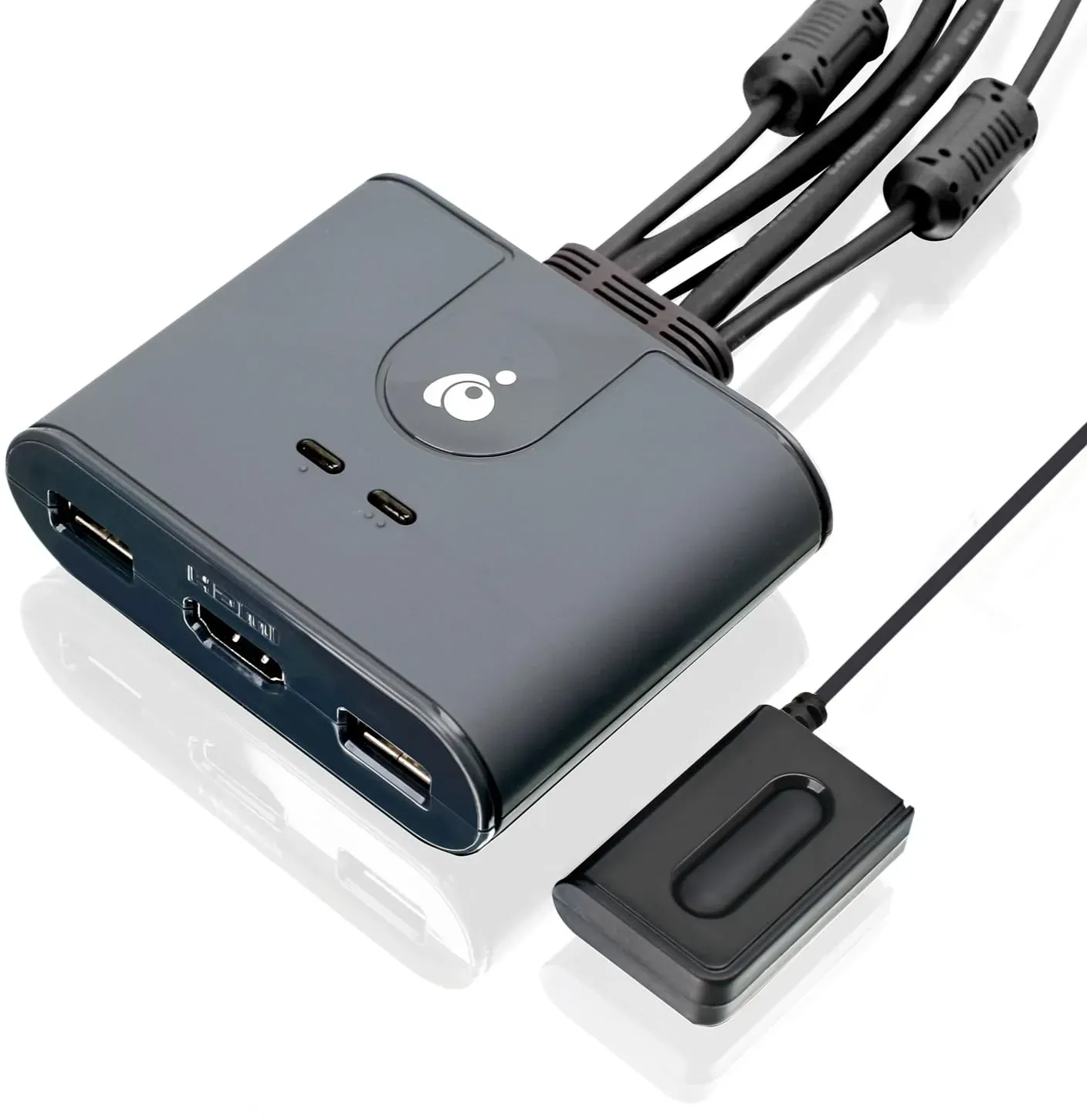 Auf Lager Versand durch AmazonIOGEAR HDMI KVM Switch 2 PC 1 Monitor 4K@60Hz USB KVM Switch mit Audio, Kabel und Fernbedienung Plug-n-Play USB-Hub zur gemeinsamen Nutzung von Peripheriegeräten, kompatibel mit Windows Mac und Linux