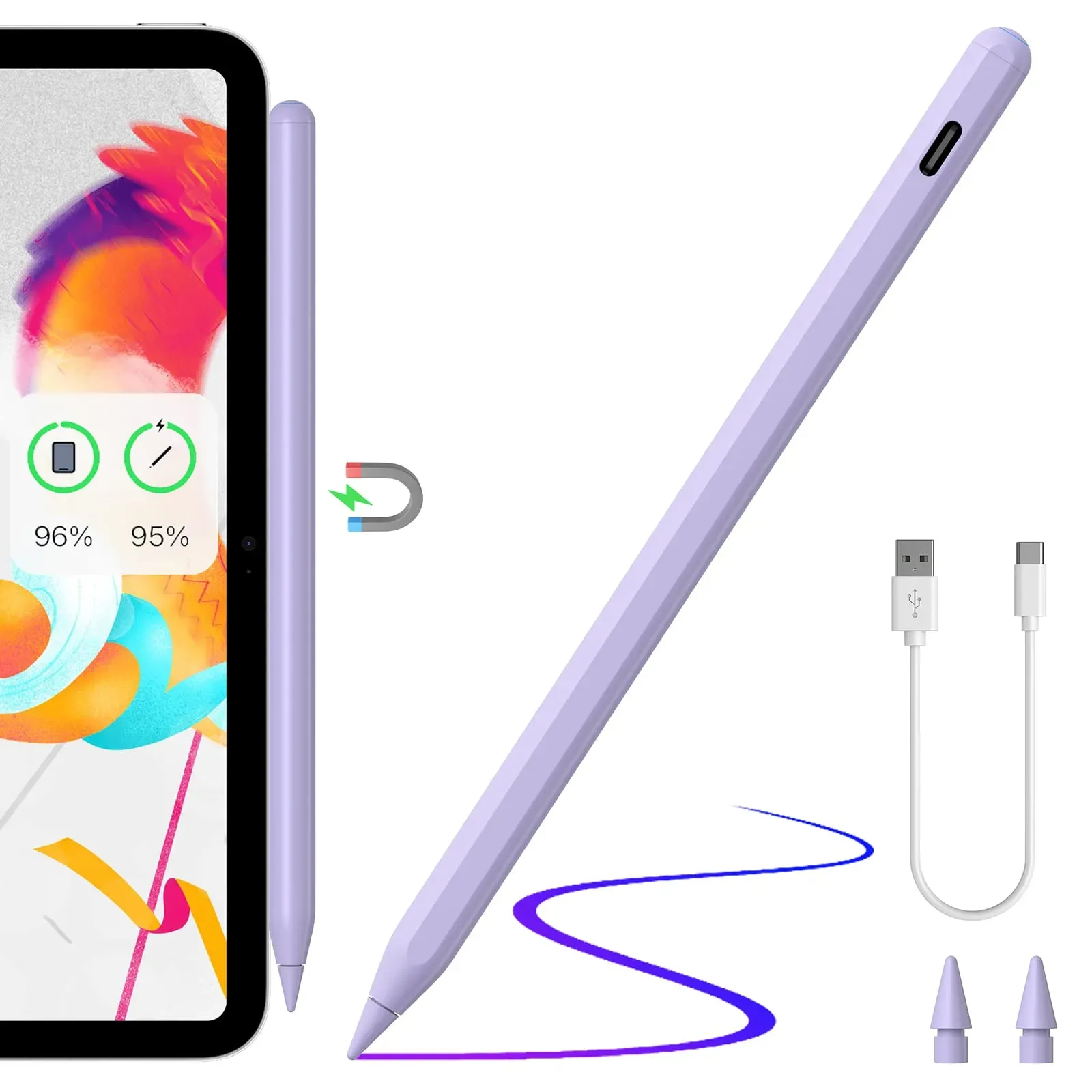 Stylus Gesamtsortiment IT + Multimedia Smartphones + Tablets Tablet + eReader Tablet Zubehör Stylus Laptops & Tablet Zubehör - EAN:6956116710675 - Modell und Name: JR-X15 Aktiver Kapazitiver Stylus-Stift Material: Aluminiumlegierung und Kunststoff Anwendbares Modell: iPad 2018 oder neuer Durchmesser: 9 mm Länge: 166 mm Nettogewicht: 15 g Ladezeit: 15 Minuten Betriebszeit: Über 9 Stunden Ladestrom: 660 mA Betriebsstrom: Weniger als 15 mA (eingeschaltet, normaler Zustand) Standby-Zeit: 360 Tage Ein/Aus: Touch-Taste oben Lademodus: Type-C-Anschluss Batterie: Lithiumbatterie (130 mAh 8C), 1 Stück 1. Verbesserte langlebige Spitze, schreibt flüssig ohne Aussetzer, kratzt nicht auf dem Bildschirm 2. Handballenabweisung, hohe Präzision 3. Neigungsempfindlichkeit 4. Type-C Schnellladung, vollständige Aufladung in 15 Minuten, 10 Stunden lange Akkulaufzeit 5. Magnetisch an das iPad anbringbar (wie der iPad Pencil der 2. Generation) 6. Kompatibel mit iPad Pencil Spitzen auf dem Markt 7. Vier Spitzen enthalten, viermal längere Lebensdauer. - gefunden von Kelkoo Dieser Stift bietet eine gute Balance aus Preis und Funktionalität mit USB-C Schnellladung, speziell für neuere iPads. ![]() S T Design Eingabestift Stift für iPad USB-C (2018-2024) Schnellladen für Apple iPads