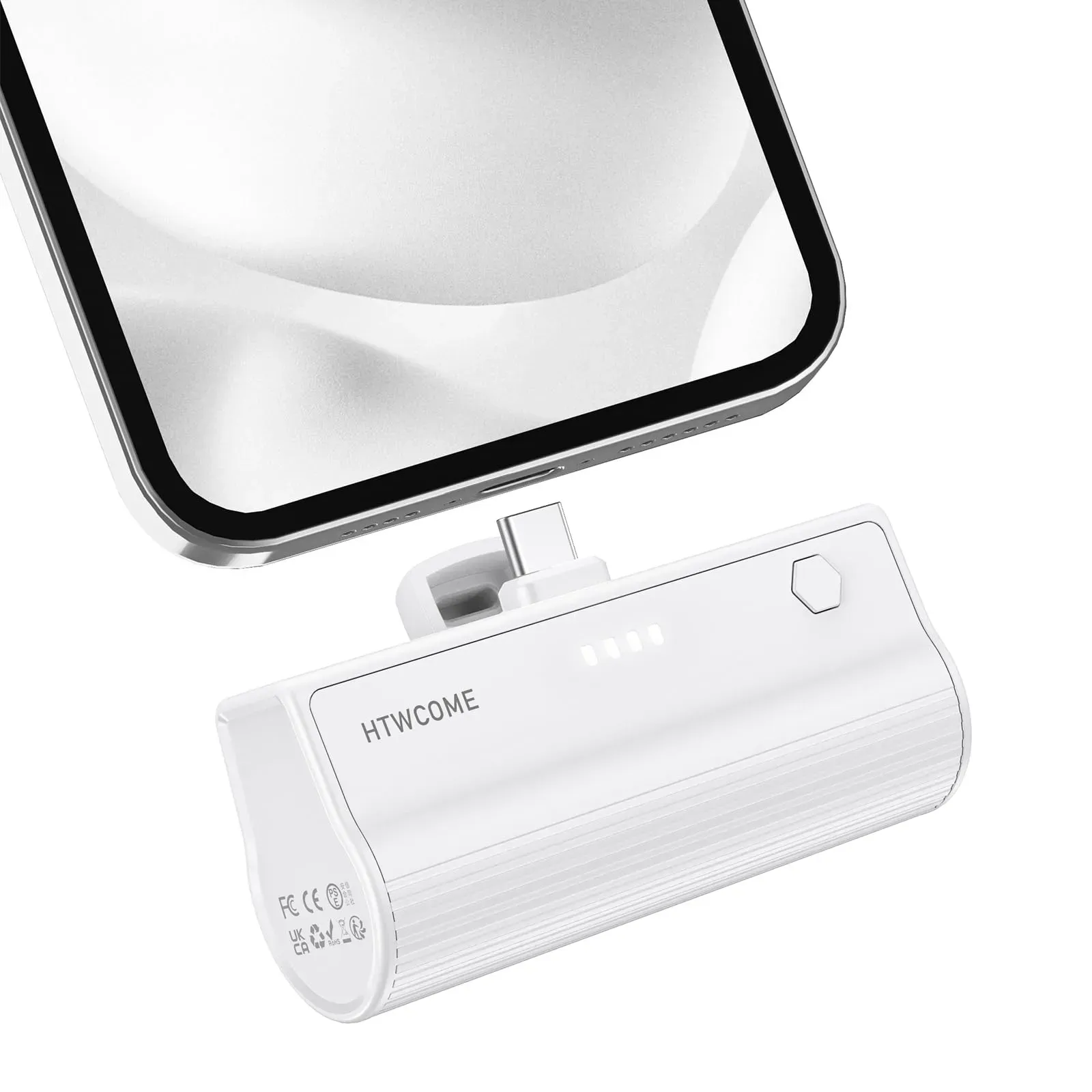 Auf Lager Versand durch AmazonHTWCOME Mini Power Bank 5000mAh, USB-C 20W Power Bank mit schnellem Laden, kompatibel mit iPhone15 / 16 Pro Max / 16 Pro / 15, Samsung Serie, Xiaomi Huawei Oppo, iPad, AirPods und Android (weiß)