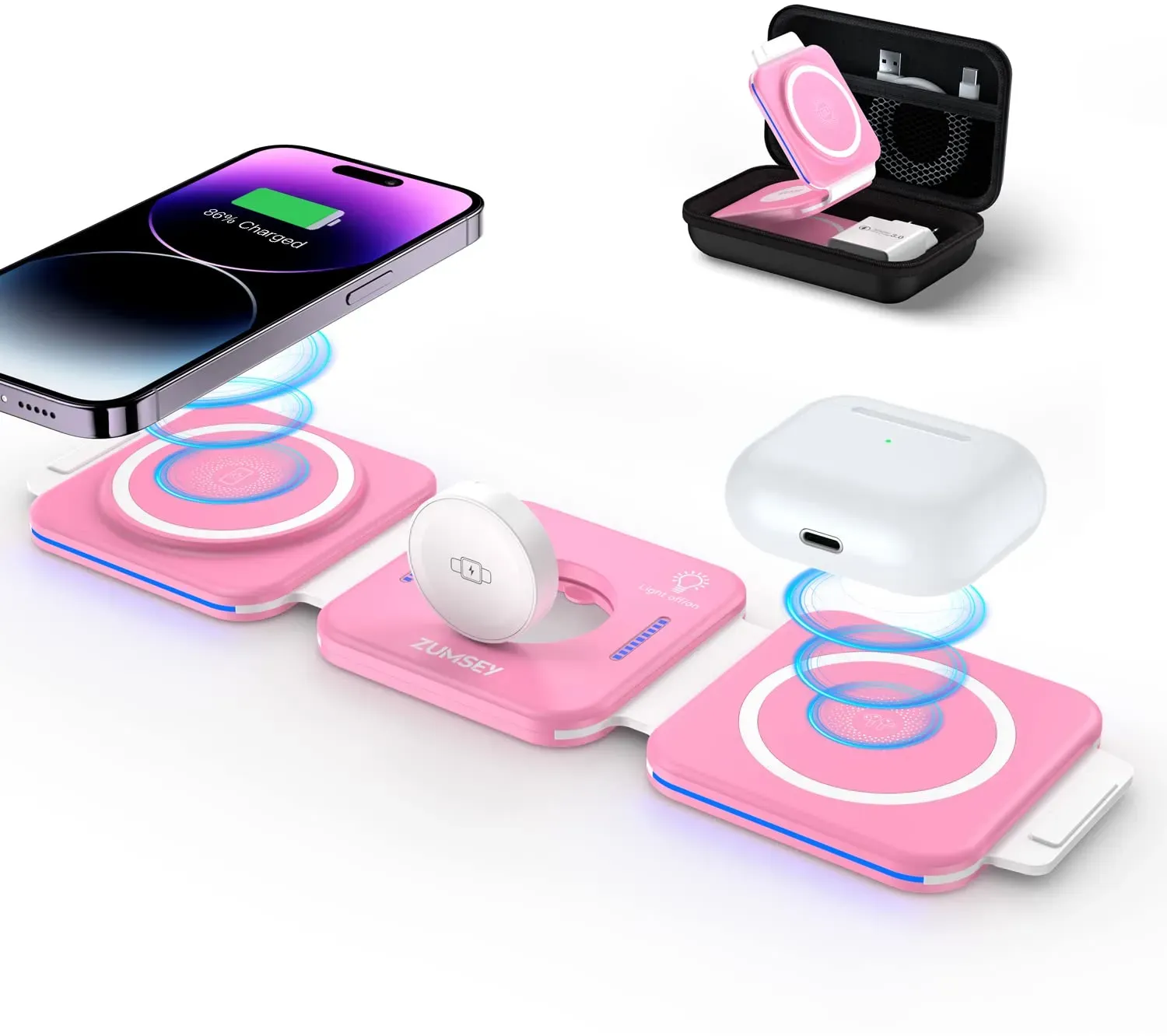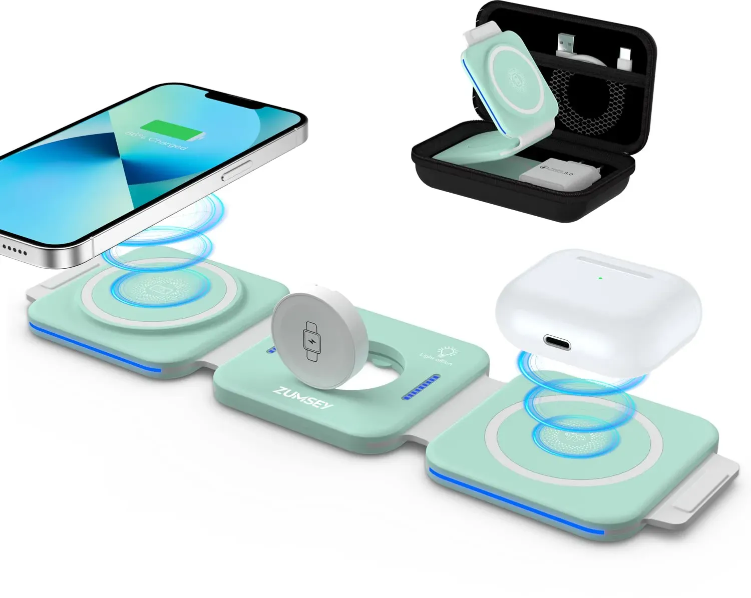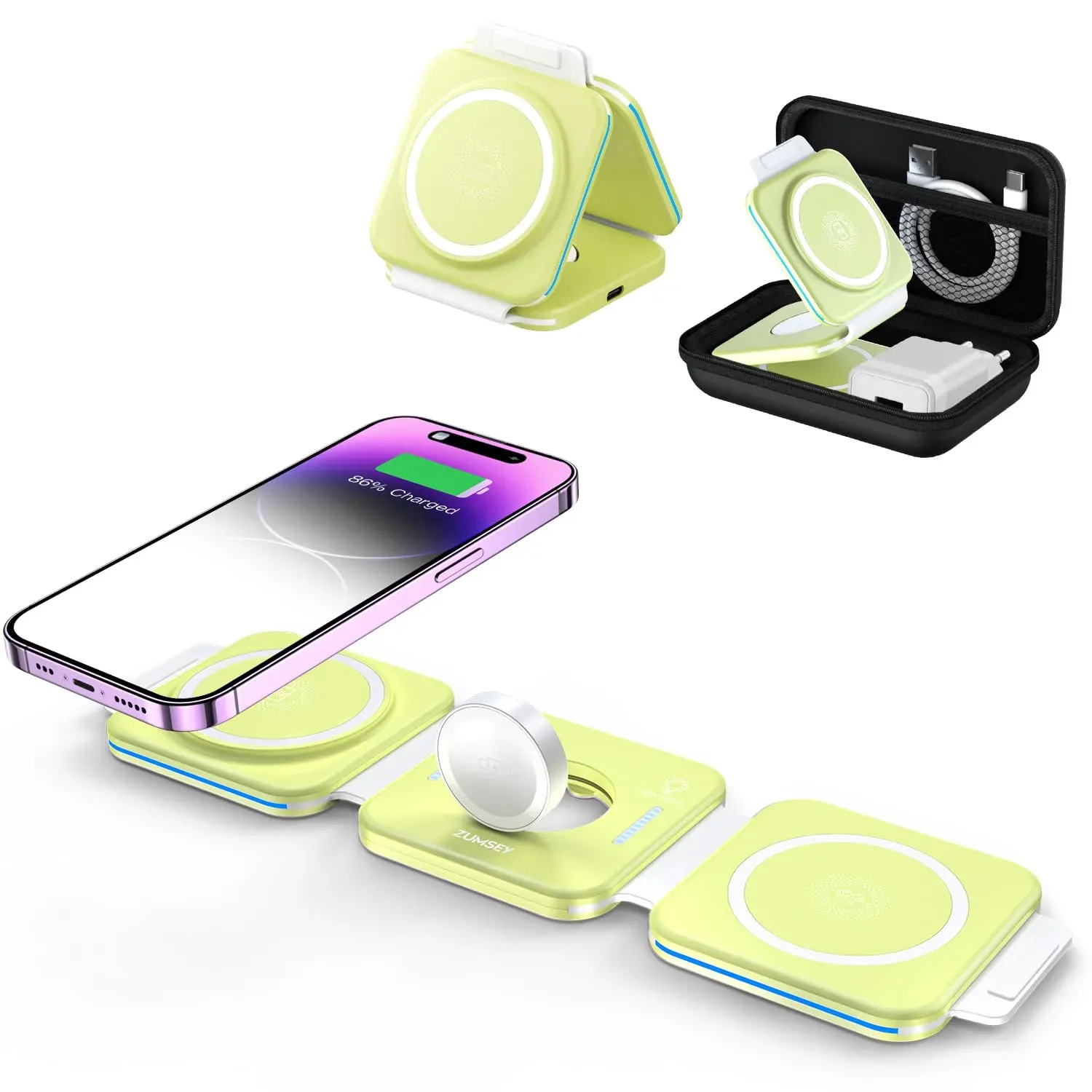Auf Lager Versand durch AmazonZUMSEY 3 in 1 Faltbare kabellose Reiseladestation, Apple Ladestation Für Apple Watch und iPhone iPods, Wireless Charger für iPhone 16 15 14 13 12 Pro Max Plus/iWatch 10/9/Ultra/8/7/6/SE/5/4/3/AirPods