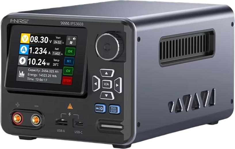 Auf Lager Versand durch AmazonFNIRSI IPS3608 DC-Netzteil Variabel, 36V 8A Tischnetzteil mit <10 mV Geringer Welligkeit, Aluminiumgehäuse, USB-A&Typ-C-Anschluss, Tag/Nacht-Dual-UI, PC-Programmierbar, 6 Voreingestellte Daten