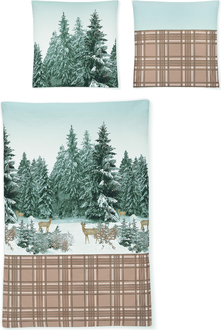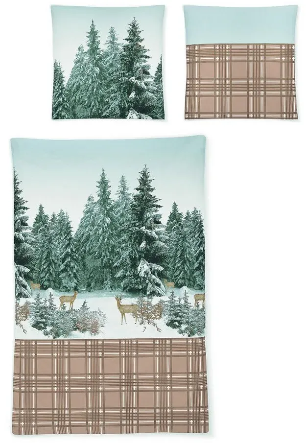 lieferbar-in 2-3 Werktagen bei dirIrisette Bettwäsche Irisette Biber Bettwäsche Feel 8537-80 Winterlandschaft Rehe 135x200, Edel Feinbiber, 2 teilig beige|blau|grün