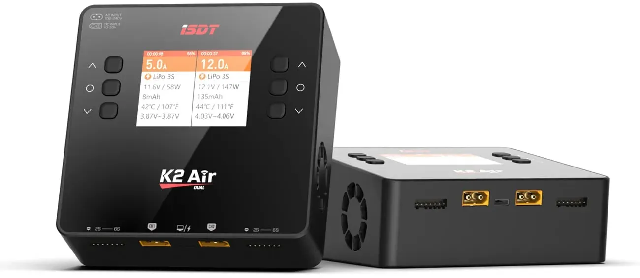 Isdt k2 air META PreisvergleichMit dem Meta-Preisvergleich suchen Sie gleichzeitig bei den großen Preisvergleich Portalen!Jetzt live Suche nach isdt k2 air starten! Isdt k2 air KaufberatungBeim ISDT K2 Air handelt es sich um ein leistungsstarkes, duales Ladegerät für LiPo- und andere Akkutypen, das sowohl mit AC- als auch DC-Eingang betrieben werden kann. Es bietet zwei unabhängige Kanäle mit jeweils bis zu 20A Ladestrom und bis zu 200W Leistung im AC-Betrieb bzw. 500W im DC-Betrieb pro Kanal[1][3][5][6][7]. Wichtige Merkmale des ISDT K2 Air sind: