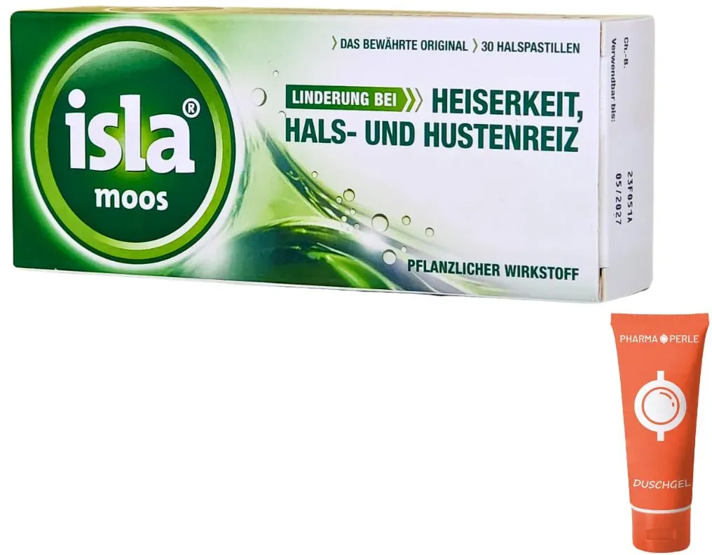 25 Händlerangebote bei billiger.de - Kategorie: Arzneimittel - Engelhard - Anwendungsgebiet von isla moos Halspastillen bei Halskratzen und Reizhusten isla moos Halspastillen bei Halskratzen und Reizhusten werden angewendet, um Beschwerden im Hals bei Husten und Heiserkeit sowie stark beanspruchten Stimmbändern zu lindern. isla moos Halspastillen bei Halskratzen und Reizhusten besitzen eine lindernde und beruhigende Wirkung. Vor allem bei Hustenreiz und Heiserkeit, trockener Atemluft und eingeschränkter Nasenatmung lindern isla moos Halspastillen bei Halskratzen und Reizhusten die lästigen Beschwerden. Islamoos hat sich nicht nur bei Halskratzen bewährt, sondern kann auch gezielt bei Mundtrockenheit im Zusammenhang mit auftretender Allergiebeschwerden eingesetzt werden.Wirkungsweise von isla moos Halspastillen bei Halskratzen und Reizhusten Die in isla moos Halspastillen bei Halskratzen und Reizhusten enthaltenen Wirkstoffe legen sich balsamartig über die Schleimhaut im Hals- und Rachenraum und bilden somit einen effektiven Schutz vor weiteren Angriffen, so dass sich die gereizte Schleimhaut schneller erholen kann. Wirkstoffe / Inhaltsstoffe / ZutatenInhaltsstoffe von isla moos Halspastillen bei Halskratzen und Reizhusten : 80 mg Isländisches Moos Extrakt, (0,4-0,8:1), Auszugsmittel: WasserArabisches Gummi Hilfstoff (+)Paraffin, dünnflüssig Hilfstoff (+)424 mg Saccharose Hilfstoff (+)Wasser, gereinigt Hilfstoff (+)Zuckercouleur Hilfstoff (+)0.035 BE Gesamt Kohlenhydrate ... ![]() claras- apotheke.d e isla moos Halspastillen bei Halskratzen und Reizhusten, 30 St