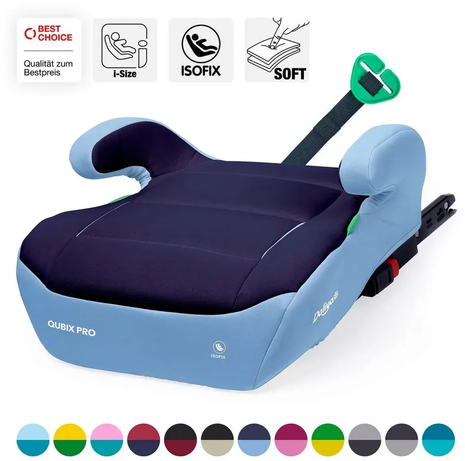 lieferbar-in 2-3 Werktagen bei dirDaliya Kindersitzerhöhung QUBIX I-Size Sitzerhöhung mit ISOFIX, Auto-Sitzerhöhung, Kindersitz, ab: ab 6 Jahre oder 125cm Körpergröße, bis: bis 12 Jahre oder 150cm Körpergröße, ab: 125 cm, bis: 150 cm, (Packung, 1-tlg), ISOFIX, I-Size, Gurtfix, ergonomisch, weich, waschbarer Bezug blau