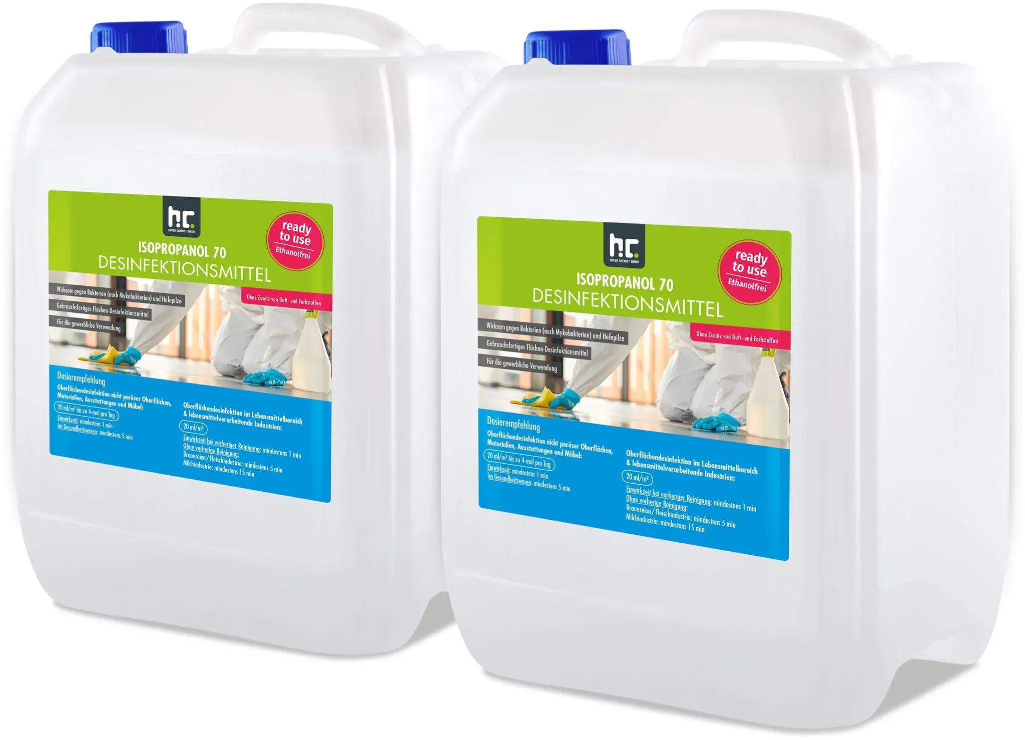 2 Händlerangebote bei billiger.de - Kategorie: Desinfektionsmittel - Brenntag - Oberflächen Desinfektionsmittel Isopropanol 70 In Zusammenarbeit mit einem der führenden Chemikalienhersteller Brenntag dürfen wir Ihnen ein hochwertiges Desinfektionsmittel für den gewerblichen Bereich anbieten. Die gebrauchsfertige Lösung bekämpft zuverlässig Bakterien (auch Mykobakterien) und Hefepilze auf nicht porösen Oberflächen wie Möbel, Ausstattungen und sonstigen Materialien. Auf Basis von Isopropanol 70% und ohne Zusatz von Farb- und Duftstoffen können Sie das Desinfektionsmittel nahezu überall einsetzen. Je nach Einwirkzeit können Sie das Desinfektionsmittel auf Ihre Bedürfnisse abgestimmt verwenden: Zur Oberflächendesinfektion empfehlen wir ca. 20 ml /m2 auf die Oberfläche aufzusprühen (je nach Sprühkopf ca. 2-3 Pumpstöße). Einwirkzeit im Gewerbebereich Diverse Bereiche: Mindestens 1 Minute Im Gesundheitswesen: mindestens 5 Minuten Einwirkzeit im Lebensmittelbereich Bei vorheriger Reinigung: mindestens 1 Minute Ohne vorherige Reinigung: Brauereien / Fleischindustrie : - GTIN:4250463120968 Dieses Großgebinde von 12x 10L von Höfer Chemie ist ideal für gewerbliche Nutzer oder solche mit sehr hohem Verbrauch, da der Preis pro Liter hier am niedrigsten ist. ![]() ![]() Höfer Chemie 12x 10 L Isopropanol 99,9% in Kanister