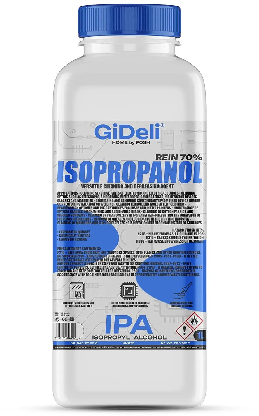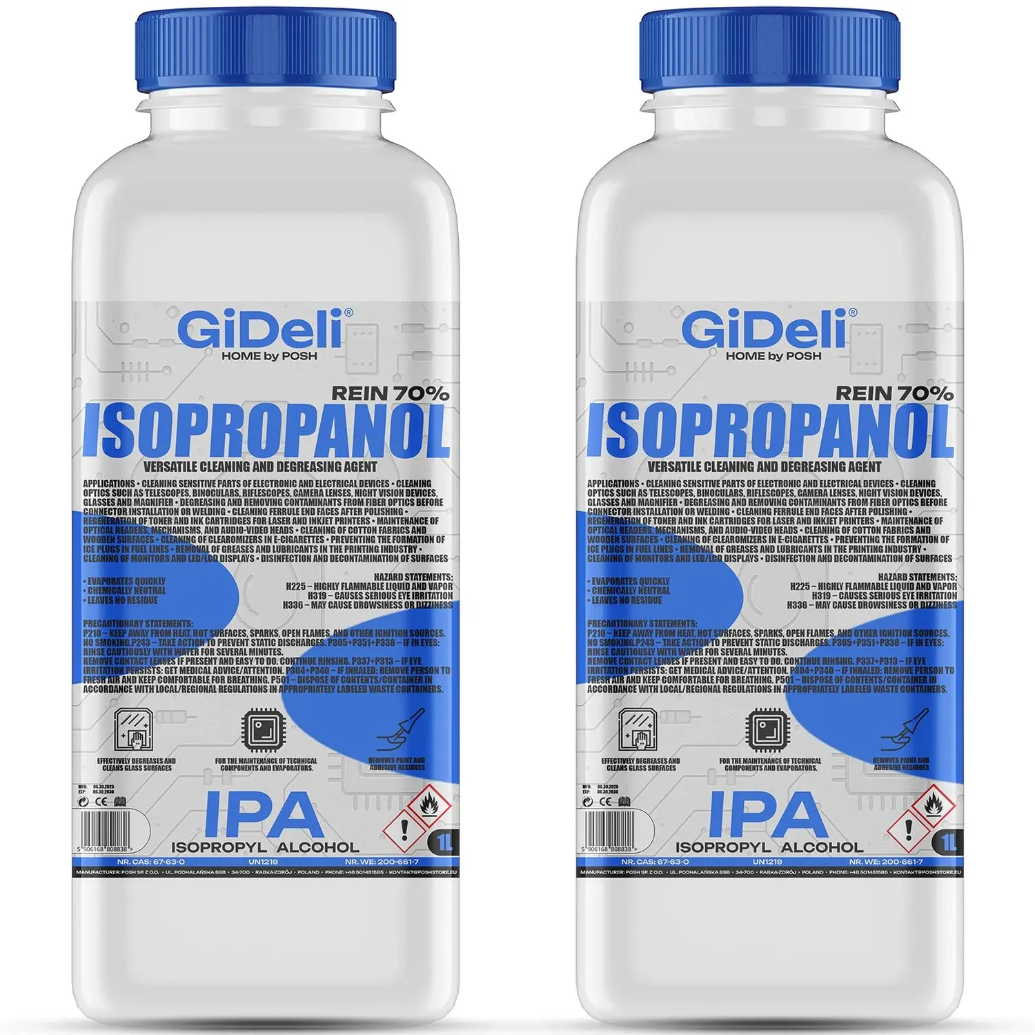 Kategorie: Reinigungsmittel - gideli - GTIN:5906168812736 - Vielseitiger Laborreiniger für präzise Anwendungen in Technik, Werkstatt und Haushalt Ideal zum Entfernen von Rückständen auf PCB, SMD und Goldkontakten Unterstützt die Pflege und Reinigung in Bereichen wie Fotografiebedarf und Metallbearbeitung Wirkt zuverlässig als Schmierentferner sowie schonender Farbentferner Besonders geeignet für Anwendungen im Umfeld von 3D Druckern, Sensorik und Optiken - 11,99 Euro bei Amazon Marketplace Health & Personal Care - gefunden von billiger.de Dieses 3er-Pack von GiDeli für 15,99 Euro ist ideal für Anwender mit regelmäßigem Bedarf. ![]() ![]() GiDeli Isopropanol 70% 3 x 1 Liter Reiniger Hochprozentiger Isopropylalkohol IPA Reinigungsalkohol für Reinigung von elektronischen Bauteilen, Linsen und Bildschirmen