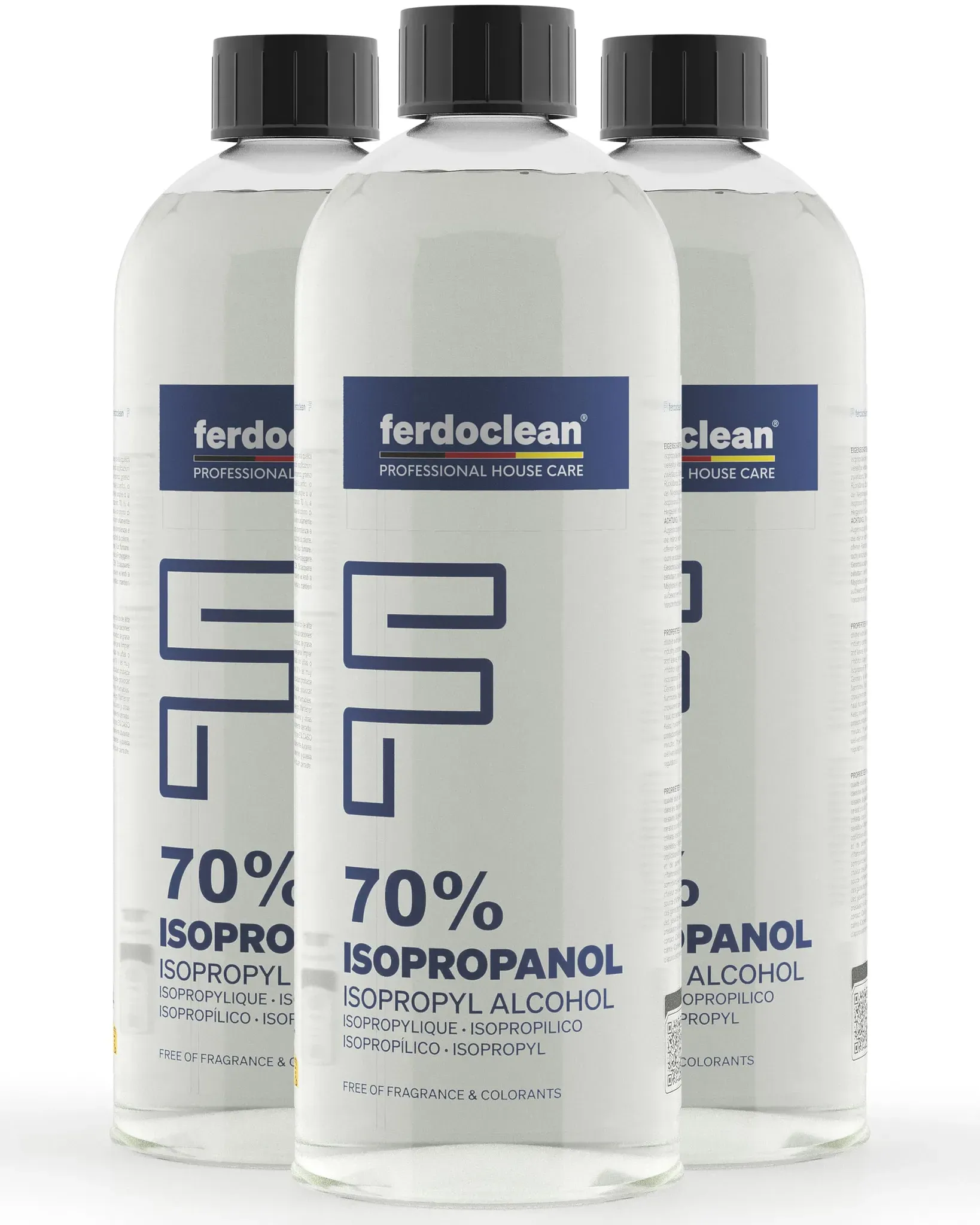 Kategorie: Reinigungsmittel - ferdoclean - GTIN:4251567231475 - ALLZWECKREINIGER - Mit ferdoclean Isopropanol Alkohol reinigen Sie mühelos Oberflächen unterschiedlichster Art - egal ob im Haushalt, bei der Autoreinigung oder in der Industrie STARKES LöSUNGSMITTEL - ferdoclean Isopropylalkohol löst kinderleicht Fette und Klebereste und verdünnt Farben, Lacke und Wachse im Handumdrehen OHNE ZUSäTZE - Keinerlei Zusätze wie Farb- und Duftstoffe; das Produkt verdampft vollständig geruchs- und rückstandslos UNZäHLIGE EINSATZGEBIETE - Für Glas, Schallplatten, Laptops, Handys, Kameras & Objektive, Brillen, als Pinsel- und Gerätereiniger, Nagelcleaner uvm. 70% REINHEIT - Das Produkt ist aus 70% (Volumenprozent) Isopropylalkohol und 30% destilliertem Wasser zusammengesetzt und somit besonders hochwertig - 29,49 Euro bei Amazon Marketplace Health & Personal Care - gefunden von billiger.de Dieses 5er-Pack von Medicalcorner24 mit Sprühflaschen für 44,79 Euro ist praktisch für die direkte Anwendung. ![]() ![]() Medicalcorner24 Isopropanol 70% Isopropylalkohol 2-Propanol, 5 x 1 Liter Sprühflasche, 5 x 1000 ml