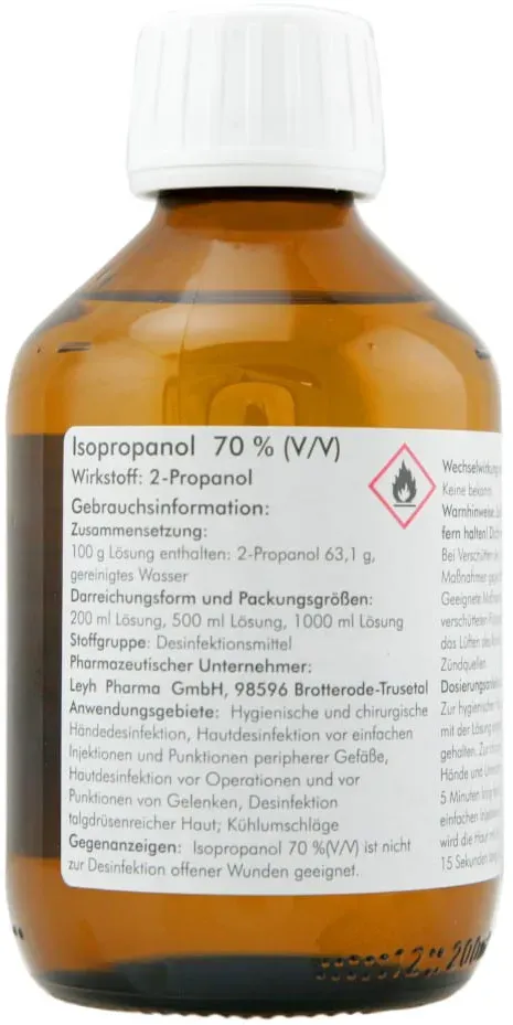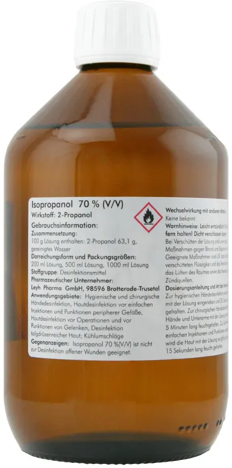 51,90 /l - Kategorie: Arzneimittel - Caesar & Loretz - GTIN:4150110067380 - PZN:11006738 - ISOPROPANOL 70% Caelo HV-Packung Standard Zul. 100 ml - 5,19 Euro bei Apotal - gefunden von billiger.de Dieses 500 ml Gebinde ist ideal für den regelmäßigen Gebrauch im Haushalt oder für kleinere Reinigungsaufgaben. ![]() ![]() online-hut Isopropanol/Isopropylalkohol Klar 70% 500 ml