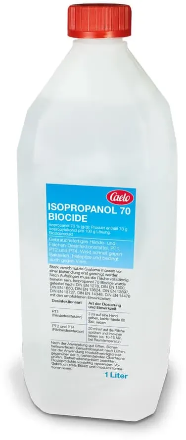 22,04 /l - Kategorie: Reinigungsmittel - Caelo - GTIN:4150127251970 - PZN:12725197 - ISOPROPANOL 70 Biocide Caelo HV-Packung Flächendes 1 L - 22,04 Euro bei Apotal - gefunden von billiger.de Dieser 5-Liter-Kanister ist eine kostengünstige Lösung für Anwender mit höherem Verbrauch oder zum Nachfüllen kleinerer Flaschen. ![]() ![]() Höfer Chemie 1x 5 L Isopropanol 70% in Kanistern