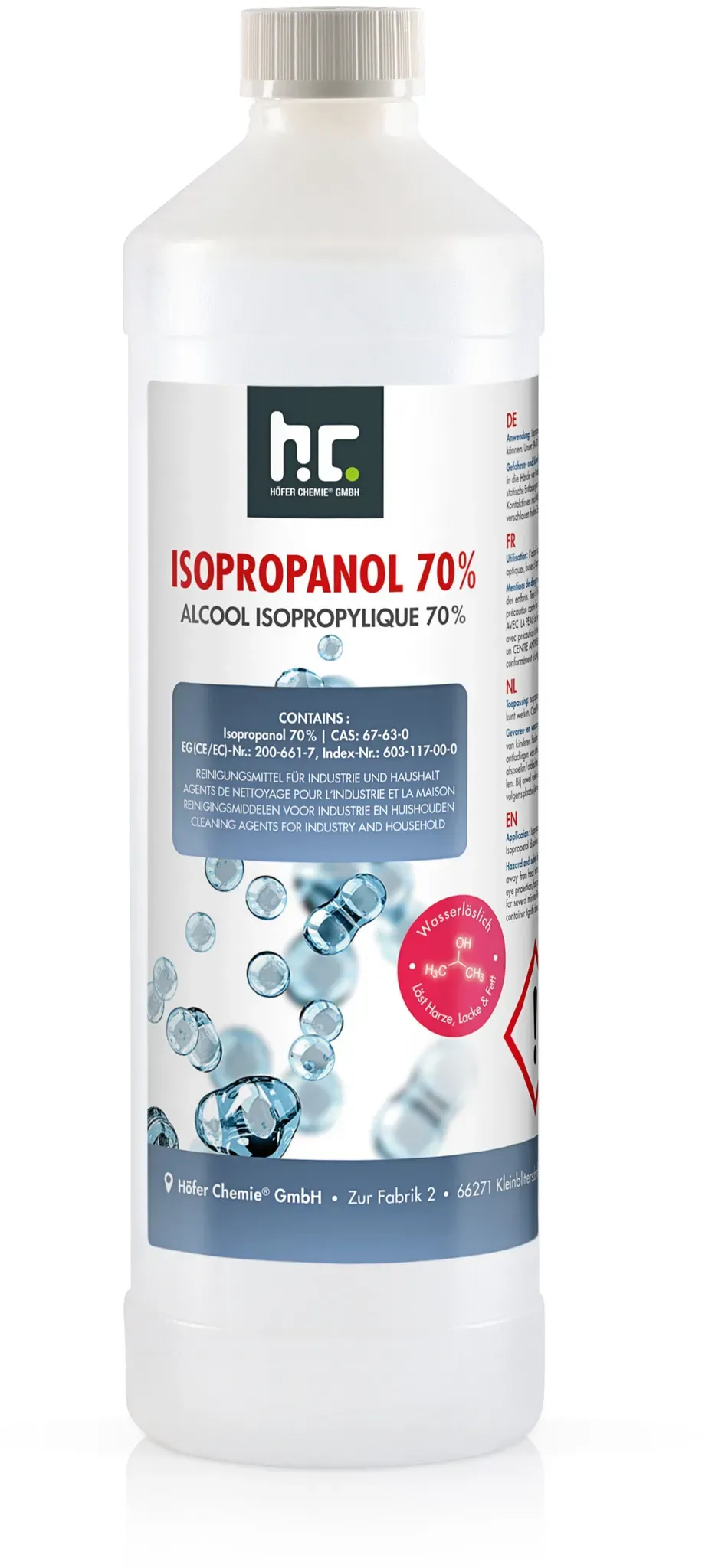 3 Händlerangebote bei billiger.de - Kategorie: Reinigungsmittel - Höfer Chemie - Dieses Isopropanol ist technische Qualität und nicht für den medizinischen Bereich zugelassen. Sie suchen Desinfektionsmittel? Dann klicken Sie bitte HIER Isopropanol als Lösungsmittel für Oberflächen Isopropanol 70 % ist ein Lösungsmittel, das sich äußerst vielseitig einsetzen lässt. Es reinigt, entfettet und löst viele unterschiedliche Stoffe, sodass Sie mit einer Flasche im Haus auf viele Spezialreiniger verzichten können. Eigenschaften von Isopropanol Unser Isopropanol 70 % ist mit destilliertem Wasser versetzt. Es ist also wasserlöslich und kann bei Bedarf zusätzlich mit Wasser verdünnt werden. Das Lösungsmittel verdunstet beim Gebrauch rasch und rückstandsfrei. Es besticht durch eine hohe Fettlösekraft. Anwendungshinweise: Sprühen Sie Isopropanol auf die zu reinigende Oberfläche oder in ein weiches Tuch / Küchenpapier und reiben Sie die verschmutzte Stelle sauber. Einfacher und schneller geht s nicht! Isopropanol löst optimal Ablagerungen wie Harz, Lack, Fett und Tinte. Typische Anwendungsgebiete für das Reinigen von Oberflächen sind: Entfettung von Glasoberflächen Putzen von Brillen einschließlich Gläser Reinigen von Bildschirmen Reinigen von Kamera-Objektiven Schallplattenpflege Whiteboard Cleaner Darüber hinaus eignet sich Isopropanol ausgezeichnet als Nagel Cleaner für künstliche Fingernägel: zum Entfetten des Naturnagels zum Entfernen der Schwitzschicht nach dem Aushärten unter der ... Dieses Angebot ist eine gute Wahl für Anwender, die eine größere Menge Isopropanol 70 in Apothekenqualität suchen. ![]() ![]() ISOPROPANOL 70 Biocide Caelo HV-Packung Flächendes 1 L