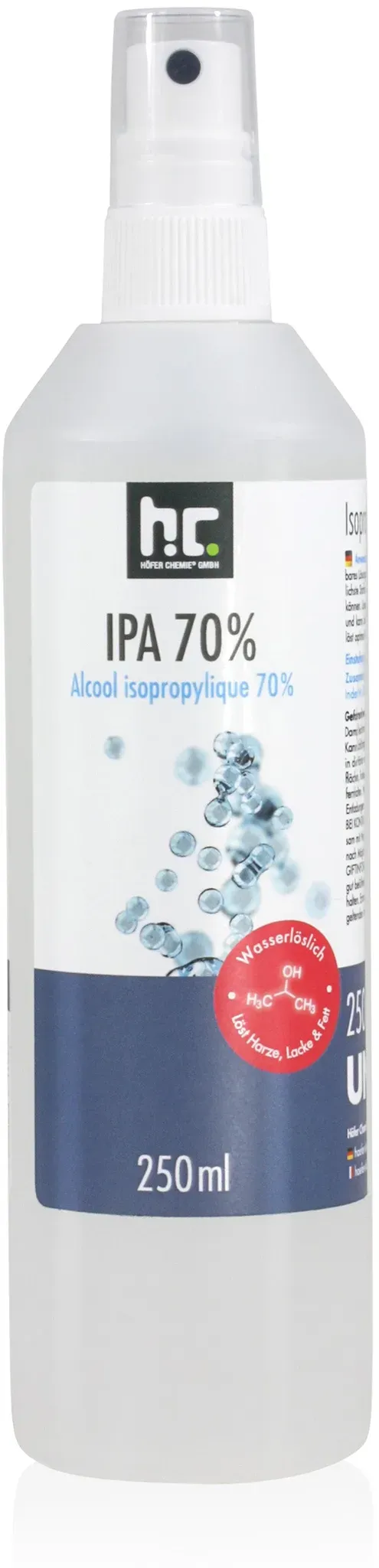 Kategorie: Reinigungsmittel - online-hut - GTIN:4251350854782 - Isopropanol / Isopropylalkohol Klar 70% 500 ml Vielseitige Anwendung zur Reinigung von verunreinigten Oberflächen Lösungsmittel für Fette, Harze, Lacke, Tinte usw. - 7,99 Euro bei Amazon Marketplace Beauty - gefunden von billiger.de Diese 250 ml Sprühflasche ist praktisch für die direkte Anwendung und präzise Reinigung. ![]() ![]() Höfer Chemie 1x 250 ml Isopropanol 70% in Sprühflaschen