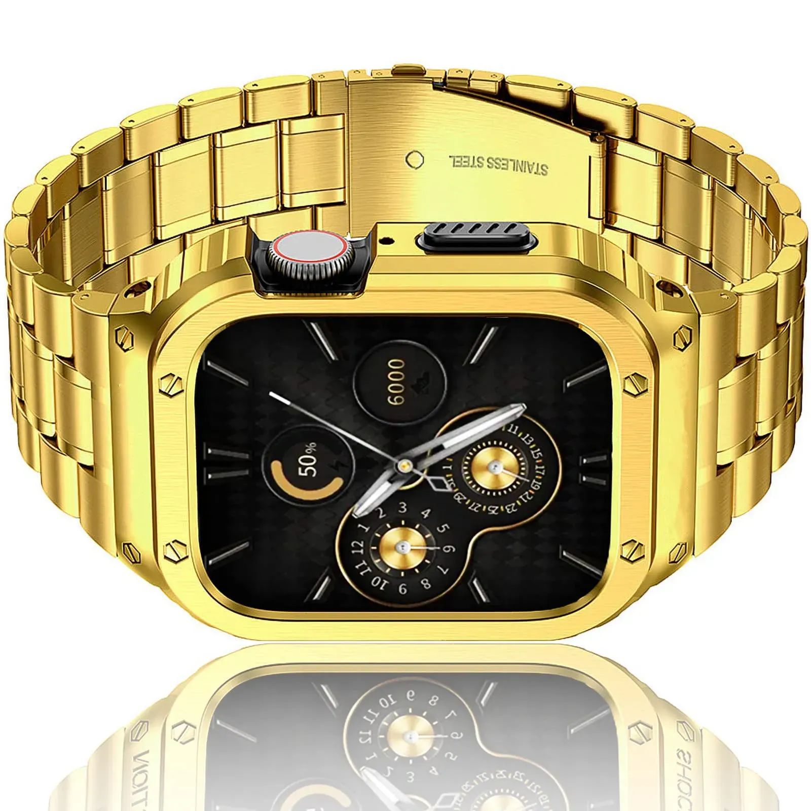 Kategorie: Smartwatch Zubehör - amznew - Kompatible Modelle: Dieses Metallarmband für Apple Watch ist kompatibel mit iWatch Series 11 10 (46mm). Mit exquisitem Aussehen Design sieht das Metall Apple Watch Band klassisch aus, perfekt für Indoor- und Outdoor-Aktivitäten Langlebig und sicher: Das polierte Edelstahl Gehäuse mit Metallband macht es robust, langlebig und zuverlässig. Ausgestattet mit einem einteiligen Armband aus Edelstahl und schützendem Metallgehäuse, wird die iWatch-Abdeckung Ihre Uhr sicher vor Kratzern schützen Direktes Aufladen: Dieses einteilige Armband mit einem Stahl-Anschluss lässt Ihre Uhr nicht leicht herunterfallen. Außerdem können die iWatch-Bänder direkt aufgeladen werden und müssen nicht entfernt werden, geeignet für verschiedene Ladegeräte Einfach zu installieren: Die beigefügte Anleitung und ein Satz Werkzeuge können Ihnen helfen, das Band richtig zu entfernen und zu installieren, und es ist leicht zu justieren, um es für Handgelenke mit einem Umfang von 16,5 - 22,6 cm anzupassen Paket: 1*Armband mit Gehäuse kompatibel mit Apple Watch 46mm(Series 11 10), 1*Schraubendreher, 1*Einstellungsset, 1*Anleitung - 35,99 Euro bei Amazon Marketplace CE - gefunden von billiger.de Für einen luxuriösen Look bietet dieses Edelstahlarmband mit Gehäuse-Cover in Gold eine stilvolle Aufwertung. ![]() ![]() amznew HASLFM Kompatibel mit Apple Watch Armband 46mm Series 11 10, Robustes Edelstahl Metall Ersatz Armband mit Gehäuse Cover für iWatch 46mm Series 11/10 für Männer, Gold