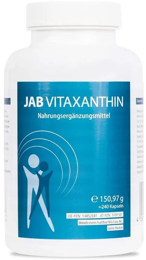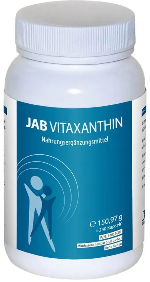 Jab vitaxanthin META PreisvergleichMit dem Meta-Preisvergleich suchen Sie gleichzeitig bei den großen Preisvergleich Portalen!Jetzt live Suche nach jab vitaxanthin starten! Jab vitaxanthin KaufberatungJAB Vitaxanthin ist ein Nahrungsergänzungsmittel in Kapselform, das vor allem das starke Antioxidans Astaxanthin enthält, gewonnen aus Mikroalgen. Es unterstützt antioxidativen Schutz gegen freie Radikale, fördert die Augengesundheit, Sehkraft und Hautschutz vor UV-Strahlung sowie das allgemeine Wohlbefinden[1][3][15]. Wichtige Produktmerkmale und Inhaltsstoffe:
