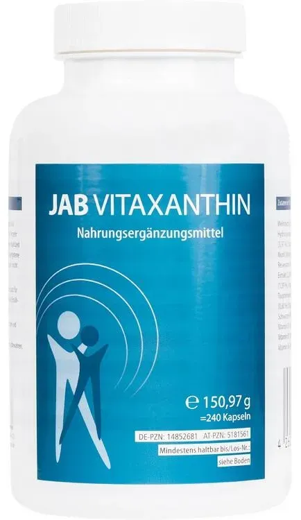 JAB biopharma - EAN: 4150148526811 - JAB Vitaxanthin Kapseln 240 St - bei docmorris.de - aus Yadore Produktdaten ![]() ![]() JAB biopharma e.K. JAB Vitaxanthin Kapseln 240 St 14852681_DBA