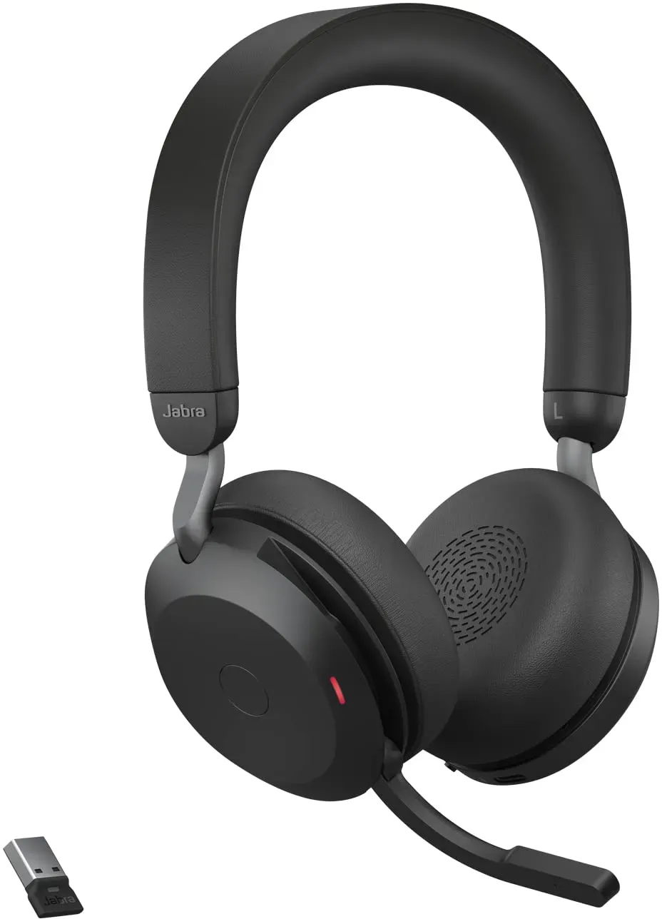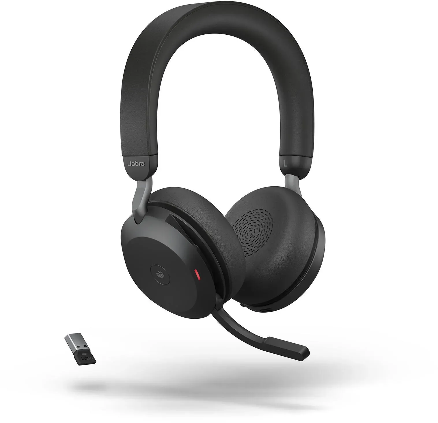 Auf Lager Versand durch AmazonJabra Evolve2 75 Wireless PC Headset mit 8-Mikrofon-Technologie - Dual-Foam-Stereo-Kopfhörer mit moderner aktiver Geräuschunterdrückung, USB-A Bluetooth-Adapter und MS Teams-Kompatibilität - Schwarz