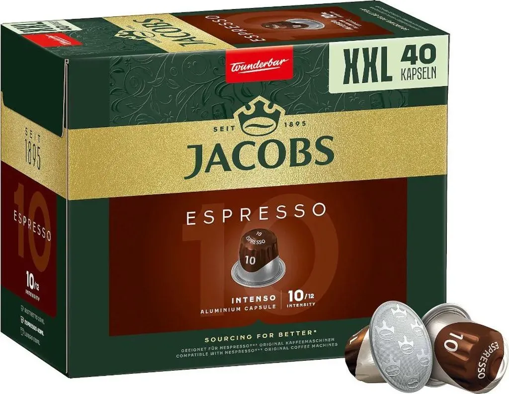 4 Händlerangebote bei billiger.de - Kategorie: Kaffee & Espresso - Jacobs - Kaffeekapseln »Espresso Intenso«, geeignet für Nespresso®-Maschinen, starker Espresso mit dem würzigen Geschmack von Robusta und den süßen und fruchtigen Noten des Arabica, mit einem lang anhaltenden Geschmack und intensivem Abgang, Intensitätsstufe: 10, empfohlene Portionsgröße pro Kapsel: Espresso 40 ml / Ristretto 25 ml, Aluminium-Kapseln schützen das Aroma, Inhalt: 10 Kapseln Preis pro 100 g: 6,15 €, Herstellerinformationen Verantwortliches Lebensmittelunternehmen: JACOBS DOUWE EGBERTS, Oosterdoksstraat 80, NL-1011 DK; Amsterdam Langemarckstraße 4-20, D-28199 Bremen Produktinformationen Bezeichnung des Lebensmittels: Gemahlener Röstkaffee in Kapseln Nettofüllmenge: 52 g Anweisungen für Aufbewahrung bzw. Verwendung: An einem trockenen Ort aufbewahren Zusatzstoffe Zusatzstoffe gem. LMIV: coffeinhaltig, unter Schutzatmosphäre verpackt Zutatenliste Verzeichnis der Zutaten: Röstkaffee - GTIN:8711000371183 Dieses Angebot ist eine gute Option für den Einstieg, da es eine kleine Packungsgröße zu einem moderaten Preis bietet. ![]() ![]() Jacobs Kaffeekapseln Espresso Intenso 4057018, 10 Stück, Kapseln Portionsbeutel 8711000371183 Jacobs 10 Stück