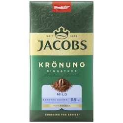 Kategorie: Kaffee & Espresso - Jacobs - GTIN:4000508059087 - Jacobs Krönung Aroma Bohnen 500 g sind ganze Kaffeebohnen mit einer mittleren Röstung und einer Intensität von 6 von 10, die ein ausgewogenes Zusammenspiel aus nussigen und zitrusartigen Noten bieten. Ideal für Portafilter- oder Vollautomaten, sind sie nachhaltig beschafft und perfekt für ein frisches, aromatisches Kaffeegenuss. - 7,99 Euro bei Joybuy - gefunden von billiger.de ![]() Jacobs Krönung Mild gemahlen (500 g)